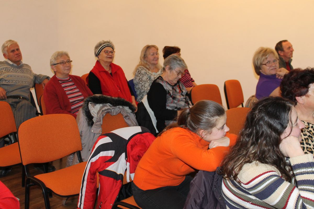 Stretnutie účastníkov Klubov zdravia, ktoré sa uskutočnilo utorok 22.11.2016, bolo na tému Šetri si svoje zdravie. Prednášku o zdravom životnom štýle si bolo možné vypočuť v podaní Oľgy Pazerini, poprednej slovenskej karikaturistky a knižnej ilustrátorky. Prítomní si pochutili aj na pripravených zdravých jedlách.