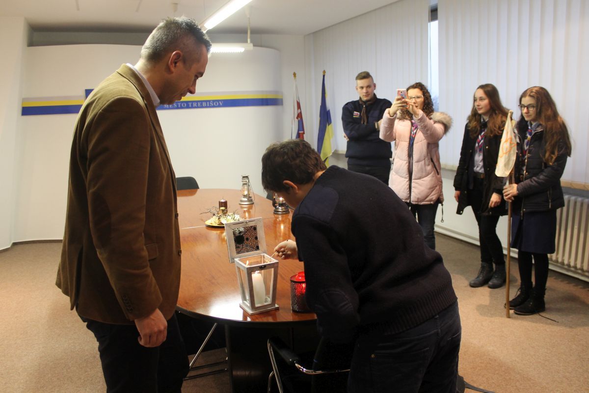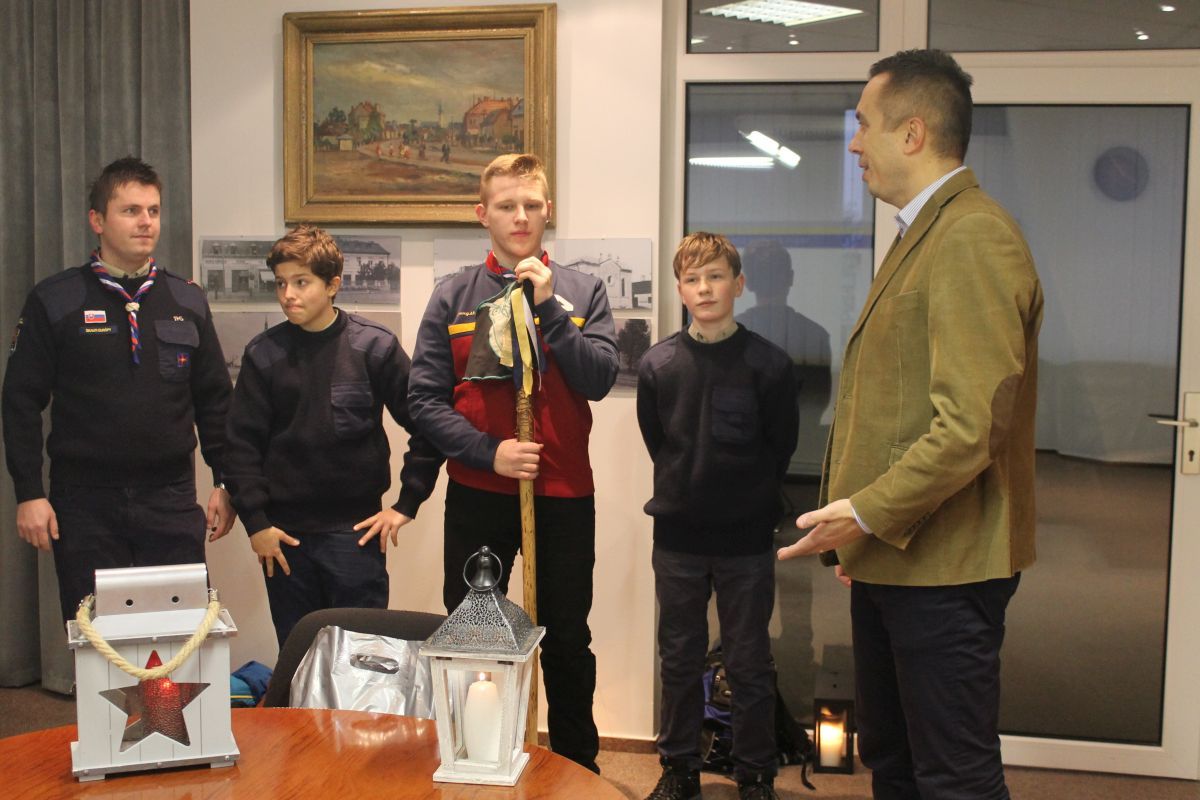 Betlehemské svetlo skauti doniesli na Mestský úrad v Trebišove