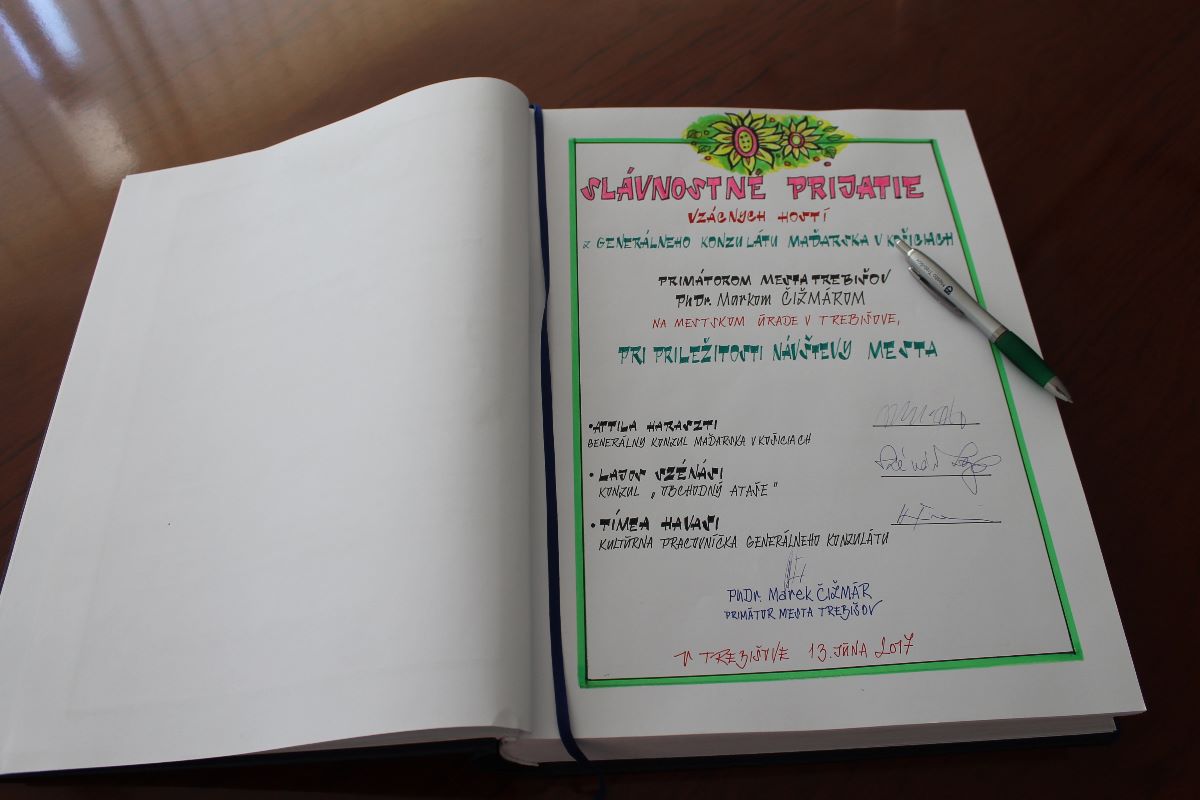 Mesto Trebišov navštívili utorok 13. júna 2017 vzácni hostia z Generálneho konzulátu Maďarska na Slovensku. Primátor slávnostne prijal na pôde mestského úradu Attilu Harasztiho - generálneho konzula Maďarska, Lajosa Szénásiho - obchodného atašé a Timeu Havasi, kultúrnu pracovníčku Generálneho konzulátu.