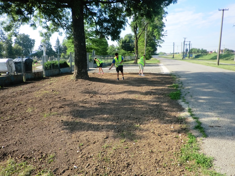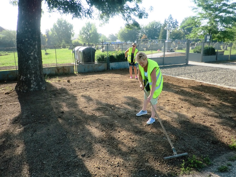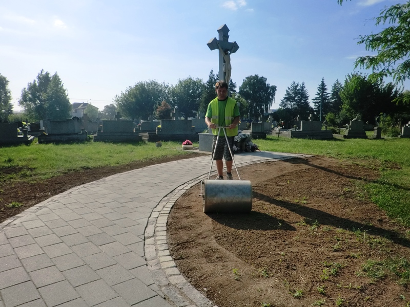 Utorok 20.6.2017 pracovníci Mestského hospodárskeho strediska vysiali trávne semeno na revitalizovanej ploche /cca 120m2/ pri vstupe na cintoríne v MČ Paričov.