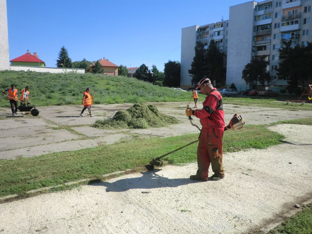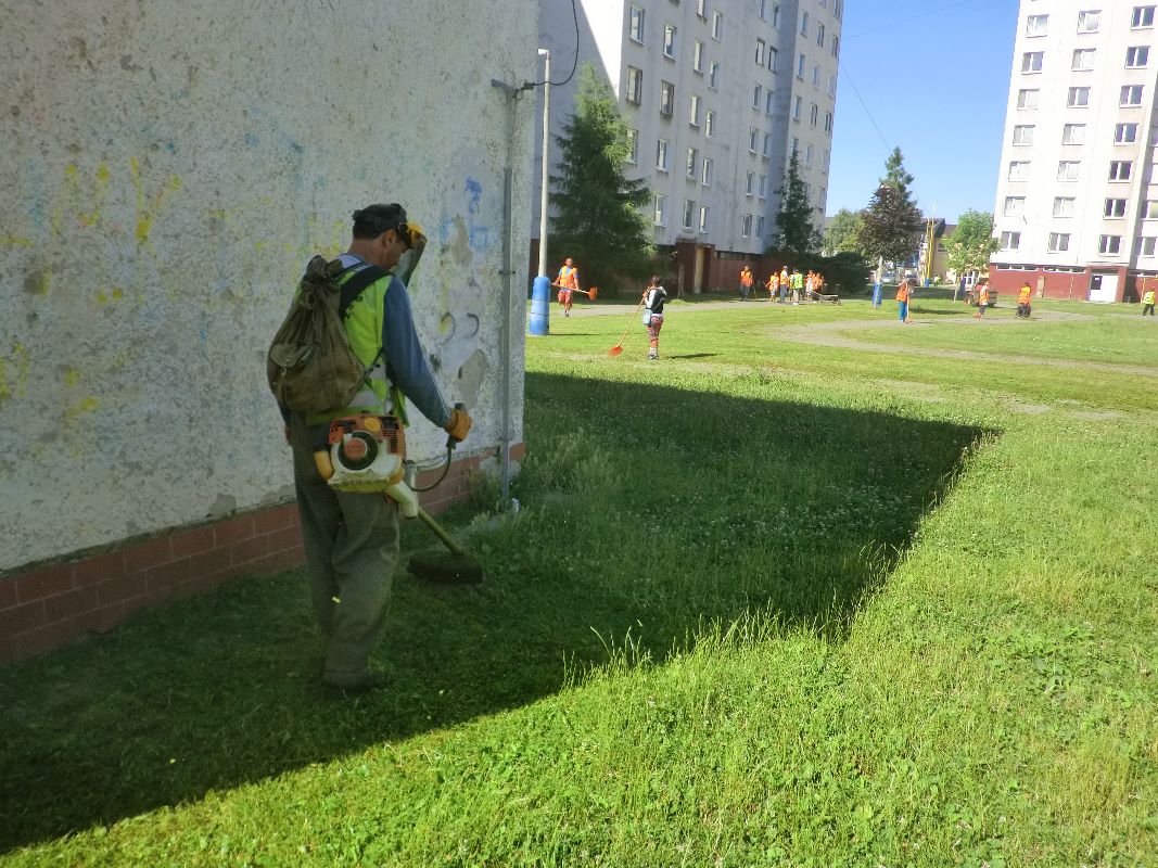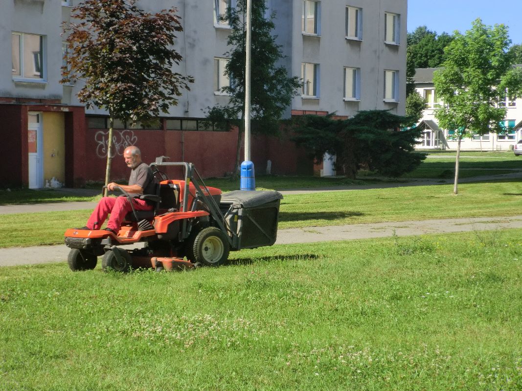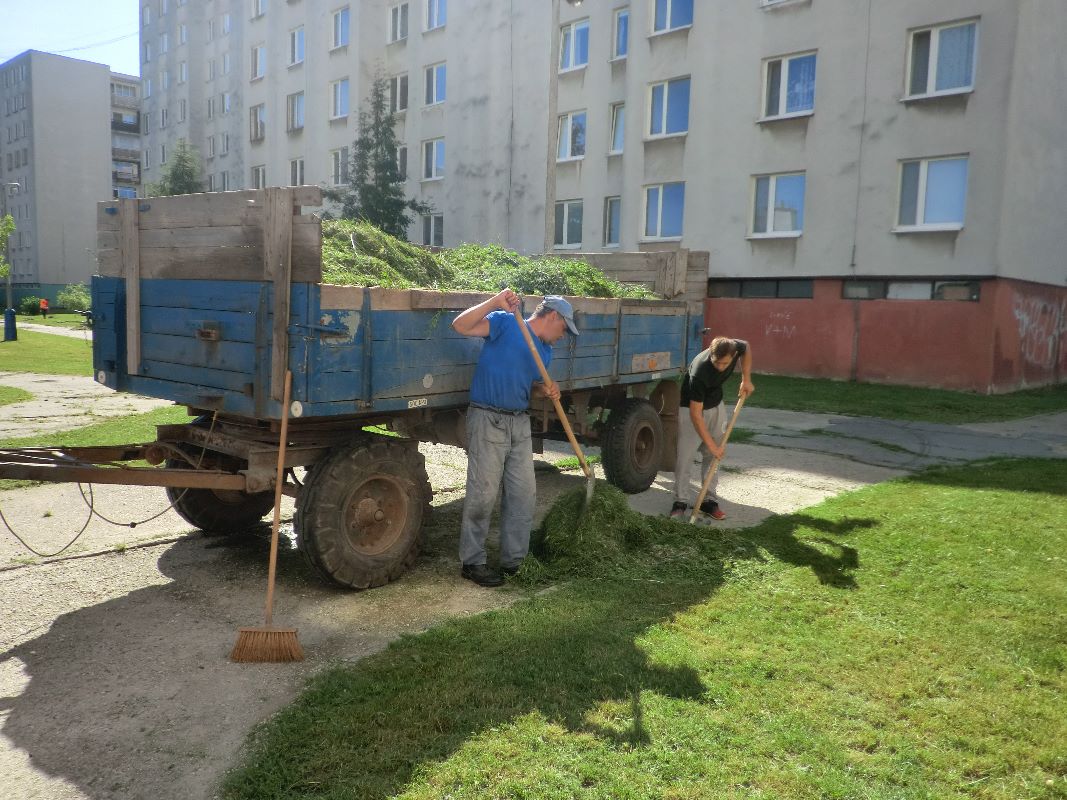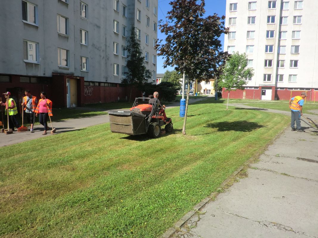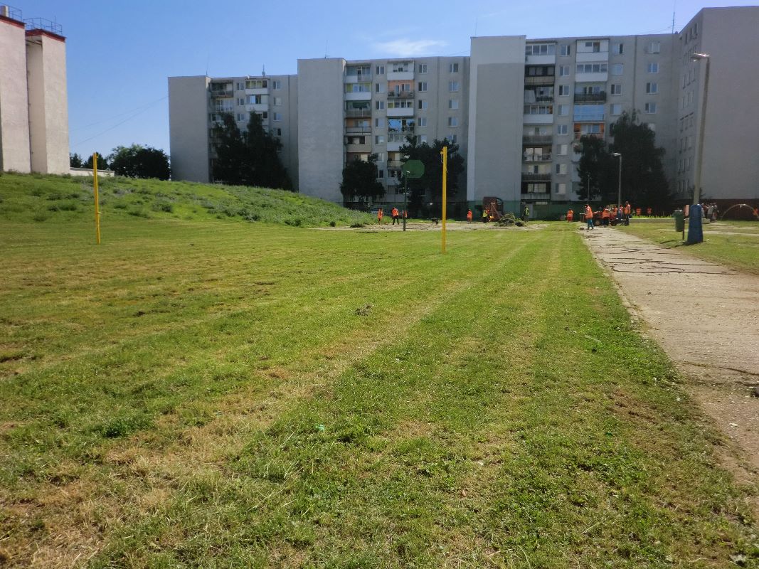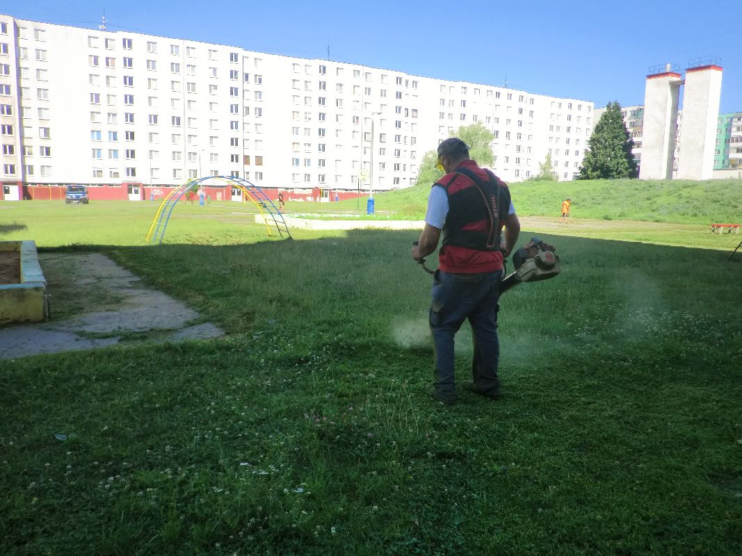 Zamestnanci Mestského hospodárskeho strediska realizovali kosbu verejných priestranstiev vo vnútrobloku na Berehovskej ulici.