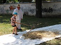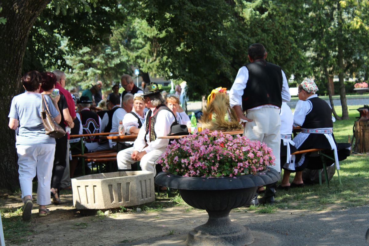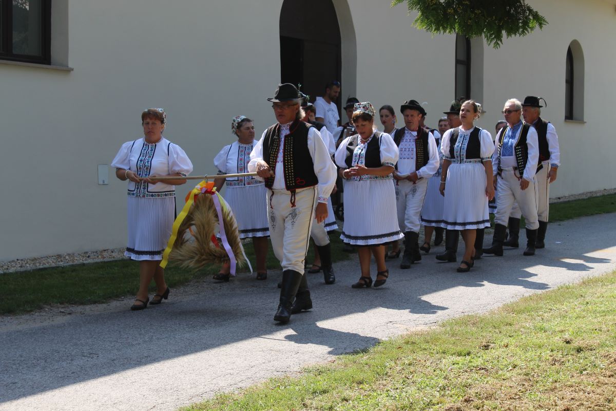 Poďakovanie za úrodu a posvätenie chleba začali svätou liturgiou a nasledoval dožinkový sprievod smerom ku kaštieľu. V areáli kaštieľa sa menilo obilie na múku a chlebík, hrozno na dobrú šťavu a kvalitné vínko na strojoch a zariadeniach, a to spôsobmi, ako to kedysi robili naši prarodičia.