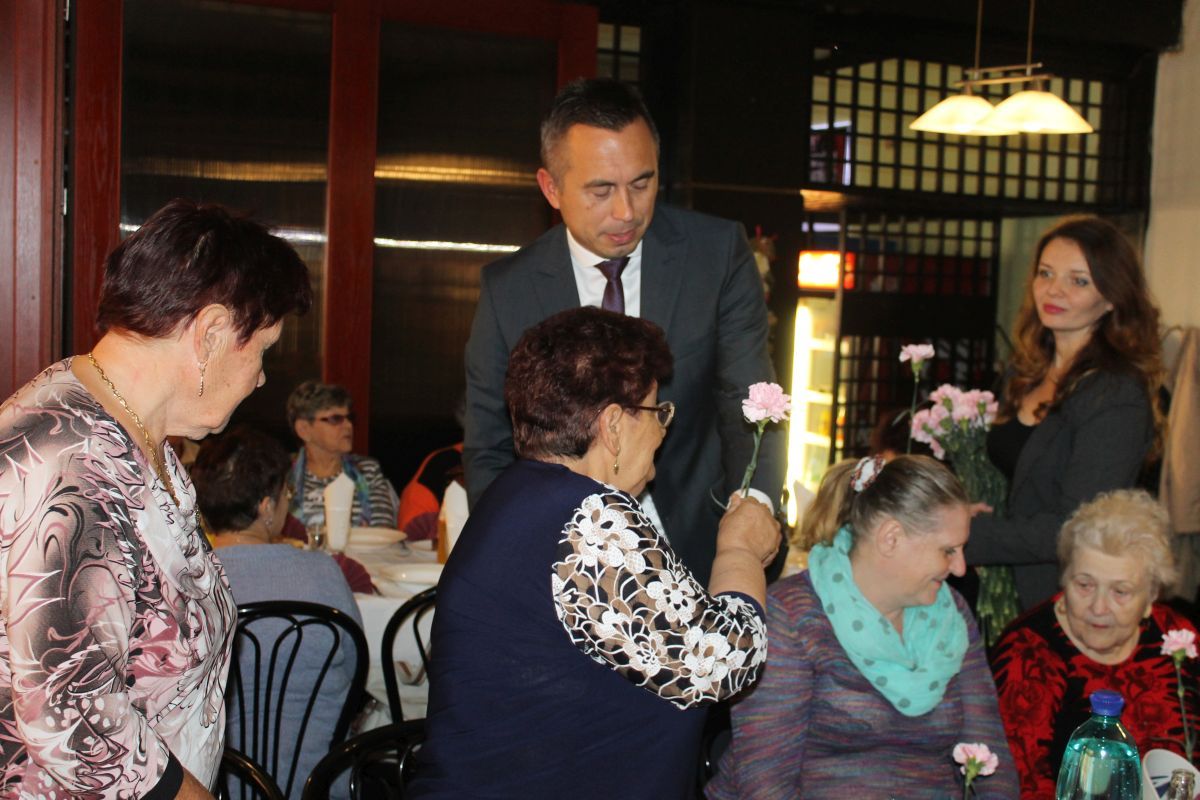 Pri príležitosti mesiaca Úcty k starším sa stretli členovia denného centra č. 3 mesta Trebišov na slávnostnom obede v Pizzerii Marco. Na toto stretnutie bol pozvaný aj primátor mesta Trebišov PhDr. Marek Čižmár, ktorý sa prihovoril všetkým prítomným seniorom a na znak úcty im podaroval kvet. Spolu s primátorom mesta prijala pozvanie aj vedúca odd. sociálnych vecí na MsÚ Mgr. Henrieta Demjanová.