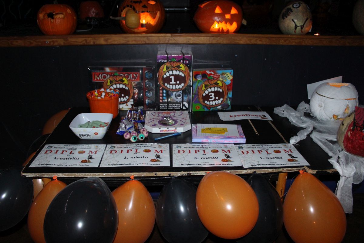 Na účastníkov magického večera čakalo vyhodnotenie súťaže O najvýnimočnejšie vyrezanú tekvicu, do ktorej sa mohli zapojiť jednotlivci, ale aj školské kolektívy. Hodnotená bola najmä kreativita autorov, ktorí neváhali a vytvárali strašidelnú tekvicovú hlavu. Podarilo sa im to skutočne unikátne. Porota mala možnosť vybrať zo zaujímavých a tvorivo spracovaných kúskov.