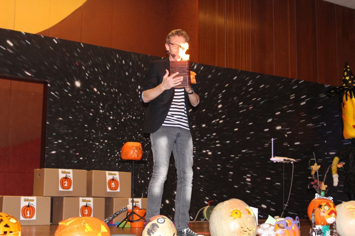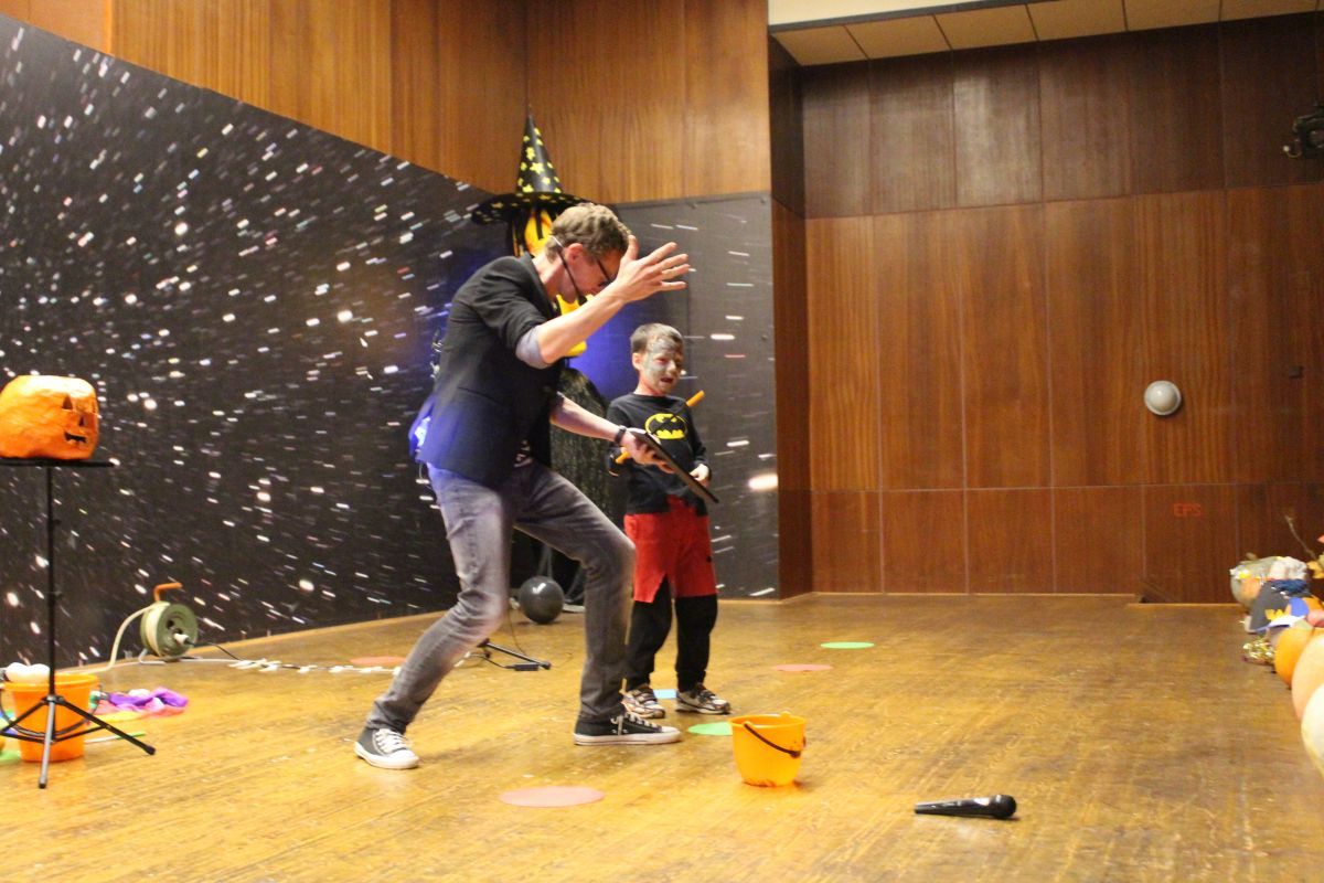 Súčasťou tohto tajuplného večera príšer, ktorý sa konal v estrádnej sále MsKS, bol strašidelno-zábavný program sprevádzaný kúzelníkom Gabim. Atmosféra netradičného večera sa niesla v znamení tajov a záhad, ktoré postupne odhaľoval. Kúzelník prezradil nielen zopár svojich tajomstiev, ale vyčaril deťom aj úsmev na perách a radosť, ktorá ich neopúšťala počas celého podujatia.