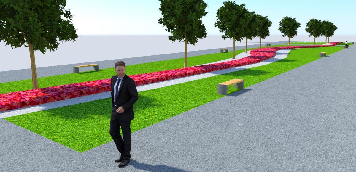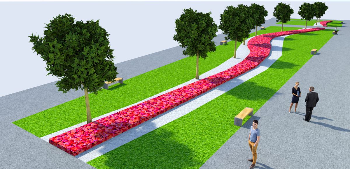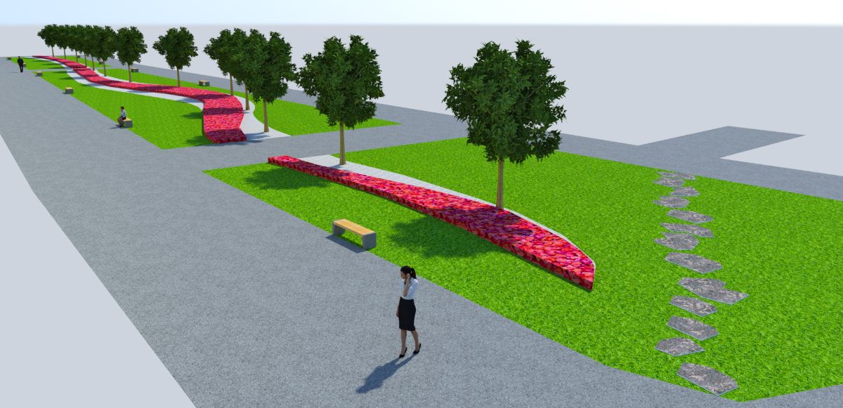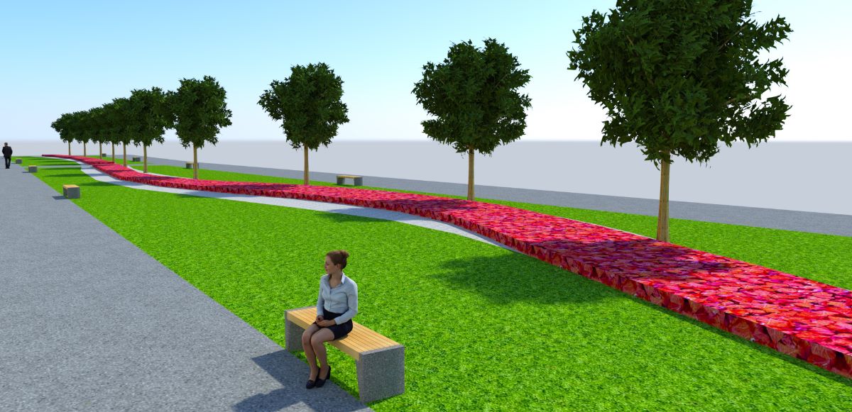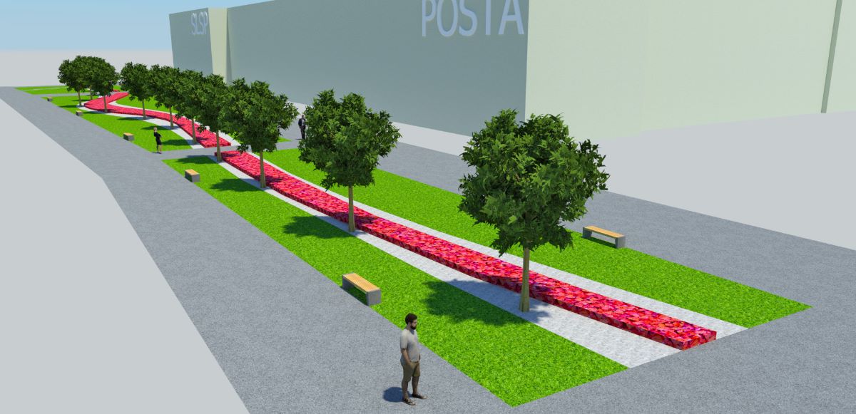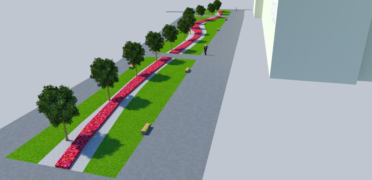 Každodenne vyhľadávané miesto života ľudí získa nový vzhľad. Návrh priestranstva je moderný a odvážny. Spolieha na lineárnu kompozíciu s kontrastom sviežej zelene nového trávnika, kvitnúcich rastlín a dekoratívnych štrkových plôch svetlej farby. Dominantné však budú novovysadené majestátne listnaté stromy. Samozrejmosťou bude aj doplnenie mestského mobiliáru (lavičky, odpadkové koše).