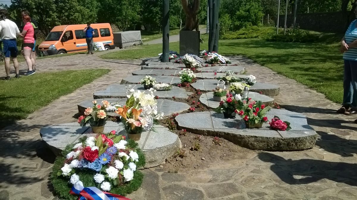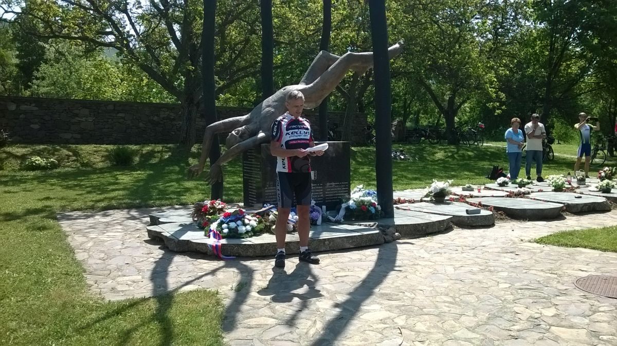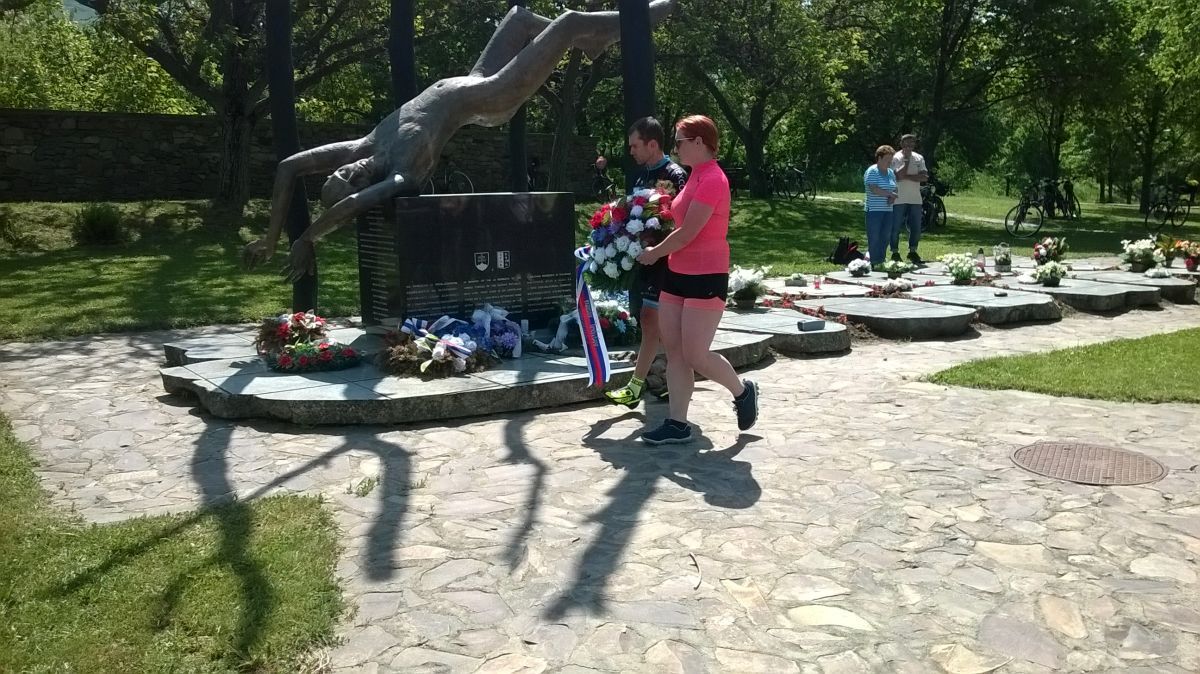 Všetci prítomní cyklisti si na spomínanom mieste uctili túto spomienku položením vencov k pomníku 42 vojakov a minútou ticha.