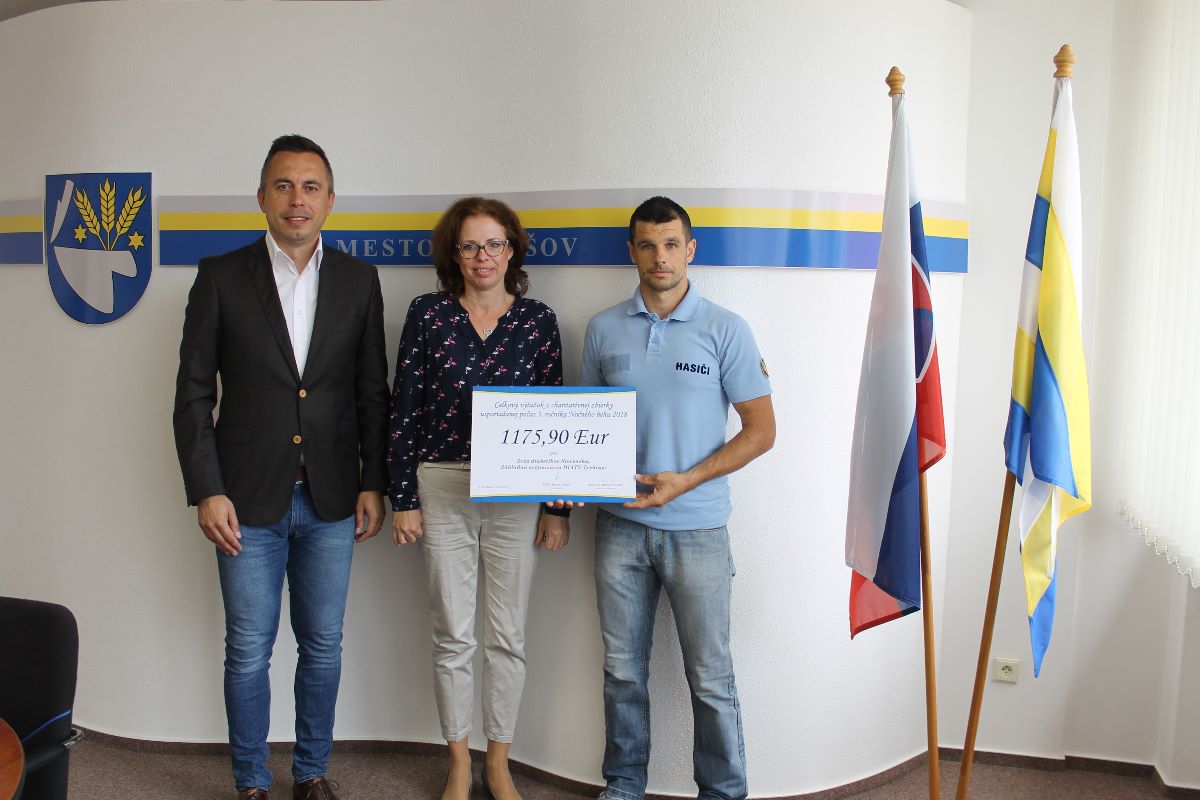 Pondelok 18. júna 2018 bol v kancelárii primátora na Mestskom úrade v Trebišove odovzdaný celkový výťažok charitatívnej zbierky usporiadanej počas 3. ročníka Nočného behu 2018 Zväzu diabetikov Slovenska - Základnej organizácii DIATV Trebišov.