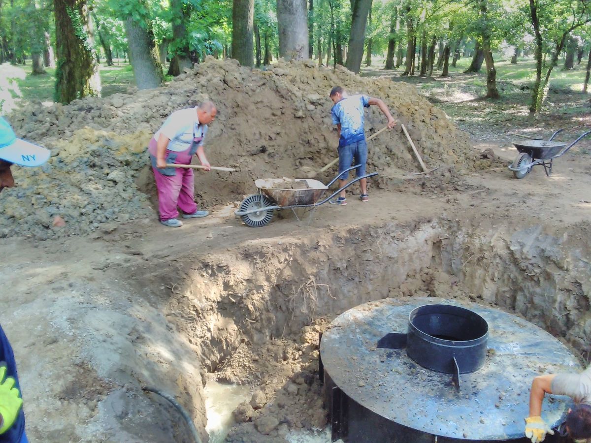 Začiatkom 28. kalendárneho týždňa pracovníci pod vedením Ing. J. Kereštana zrealizovali výkop jamy a výškové zameranie za účelom uloženia kanalizačného septika v objeme cca 10 m3 v priestore amfiteátra. Následne zabetónovali dno septika a obsypali ho zeminou. Najbližšie dni ho napoja na existujúce kanalizačné potrubie, vytvoria železobetónovú platňu na zaťaženie septika a spevnia príjazdovú plochu.