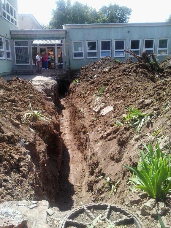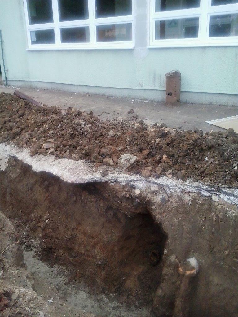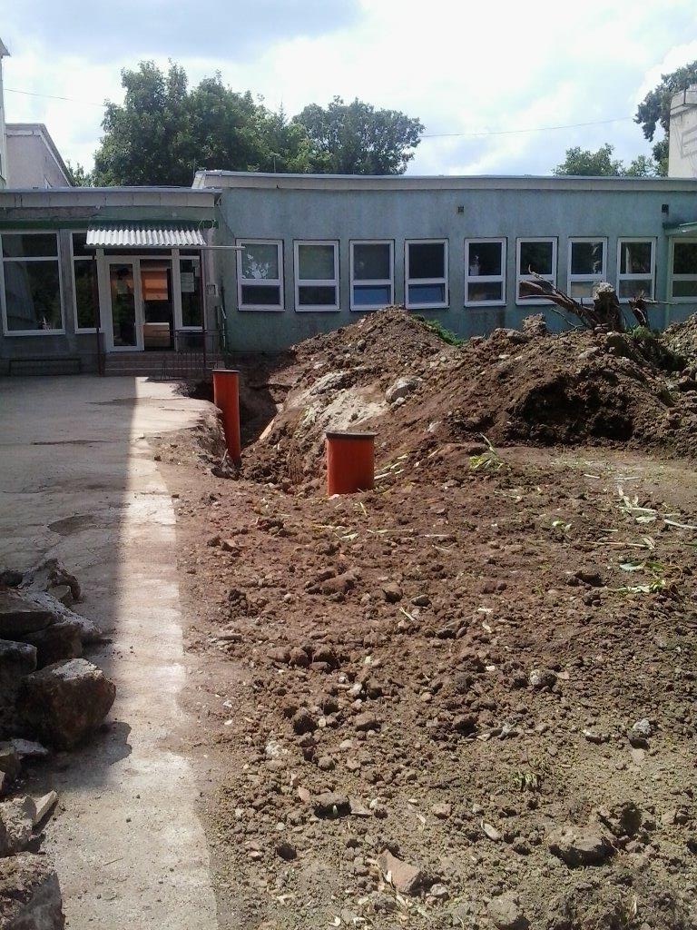 Počas 28. KT pracovníci stavebnej skupiny mesta realizujú v areáli MŠ na Hviezdoslavovej ulici výmenu vonkajšej poruchovej kanalizačnej prípojky z kameninových rúr za prípojku z plastových rúr. Výkopové a zásypové práce zabezpečujú pracovníci pod vedením Ing. Kereštana. Mechanizmy poskytli Technické služby mesta Trebišov.