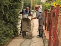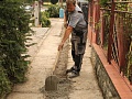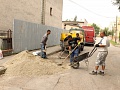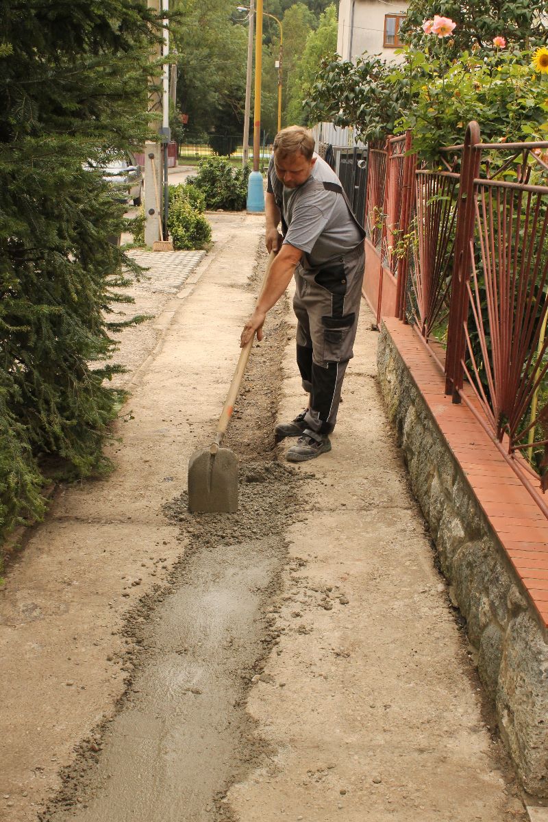 Vyrovnávanie prepadnutého chodníka betónovaním pred položením nového asfaltu