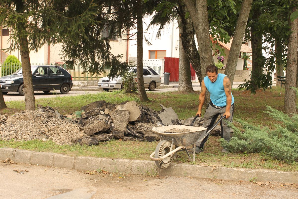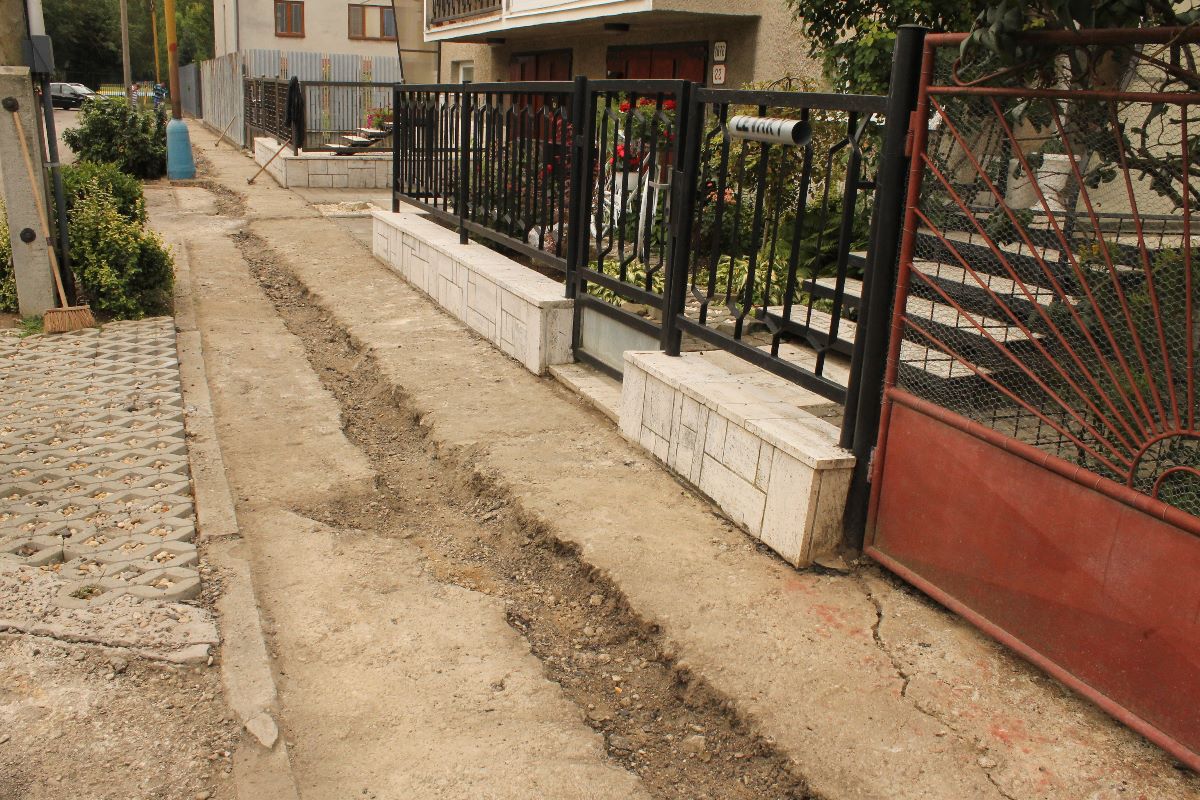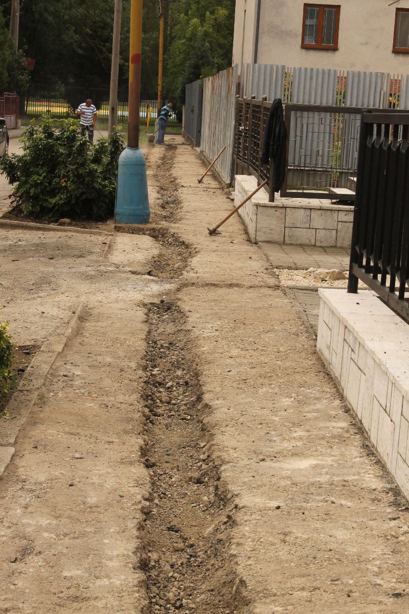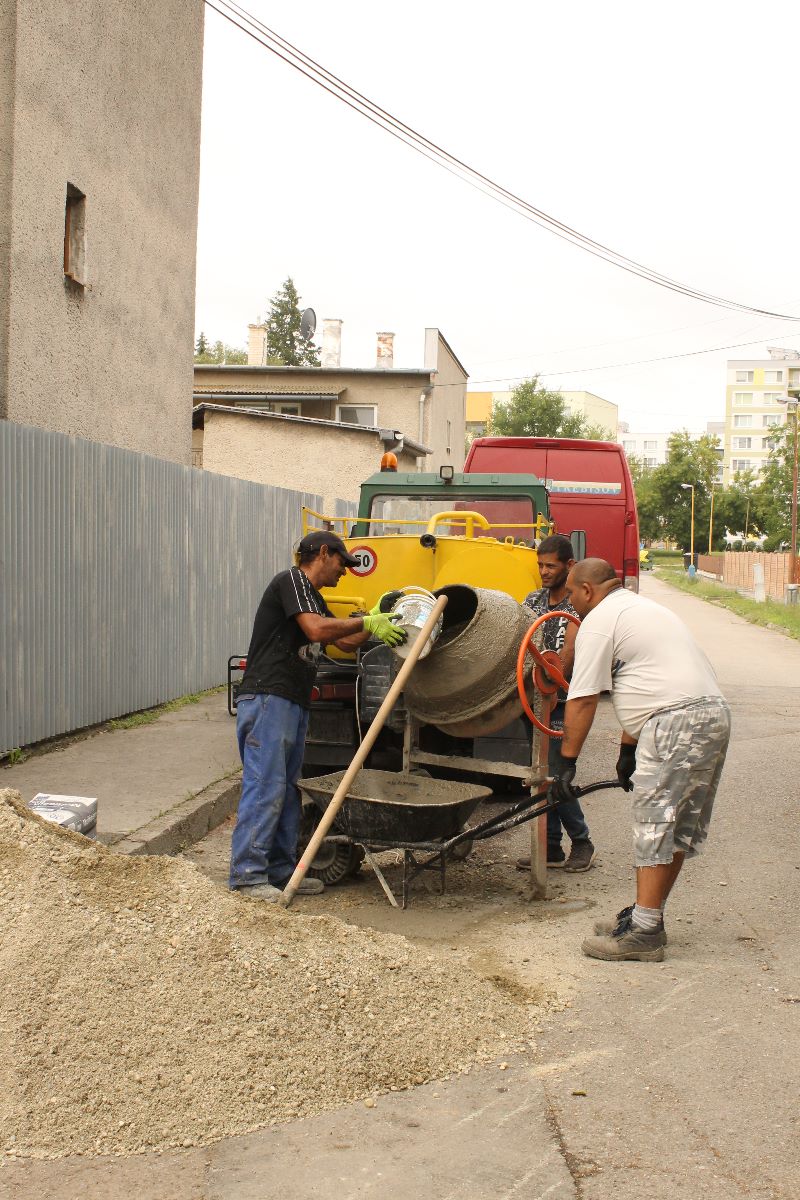 Pracovníci stavebnej skupiny mesta a pracovná skupina pod vedením Ing. J. Kereštana piatok 20. júla betónovaním vyrovnali prepadnutú časť chodníka na Palárikovej ulici. Na fotografiách zaznamenaný chodník bude v najbližších dňoch podliehať oprave položením nového asfaltu.