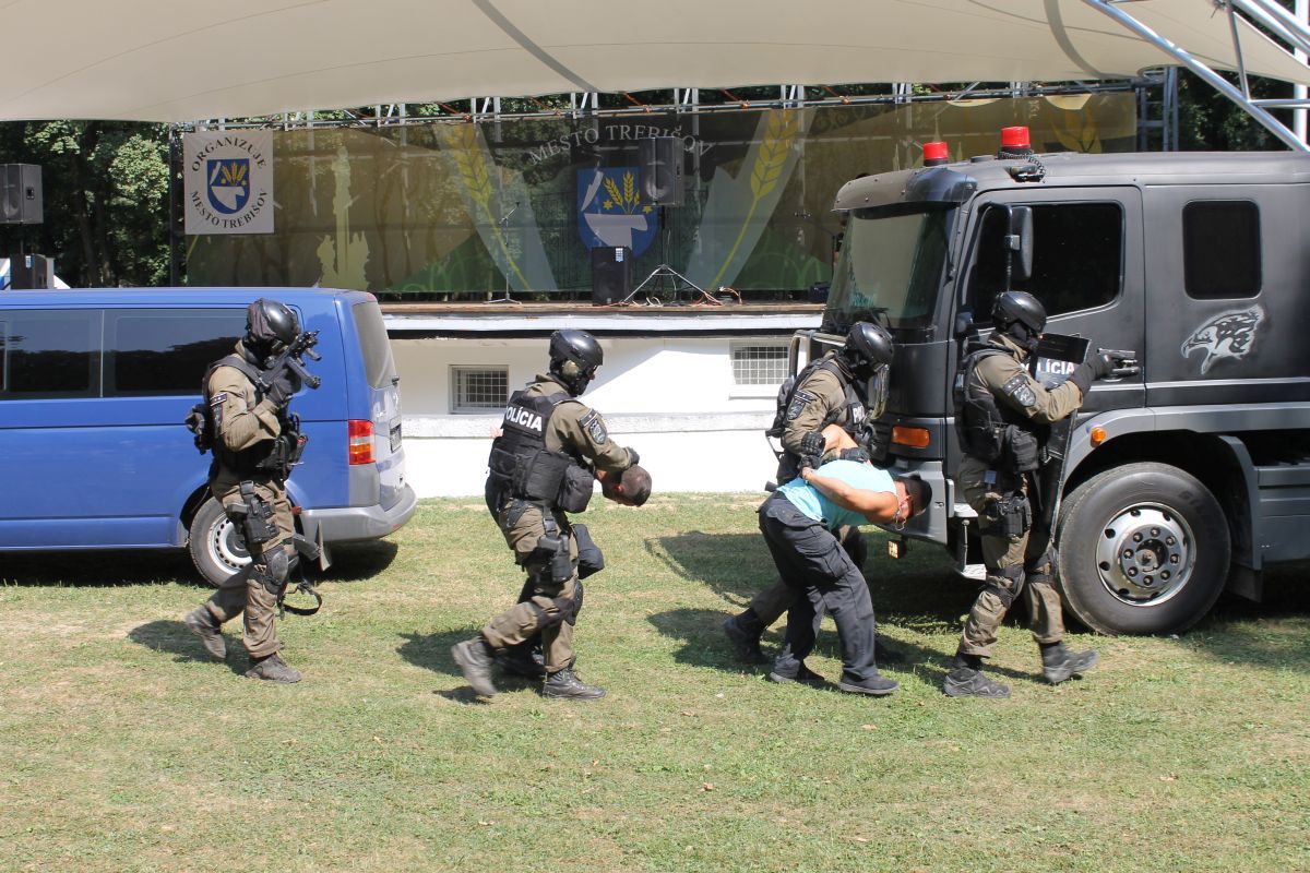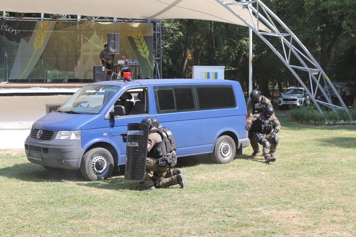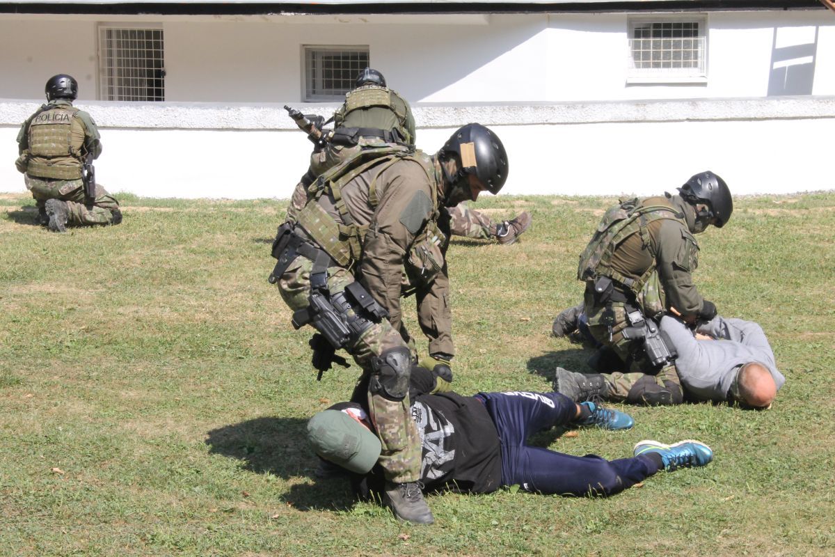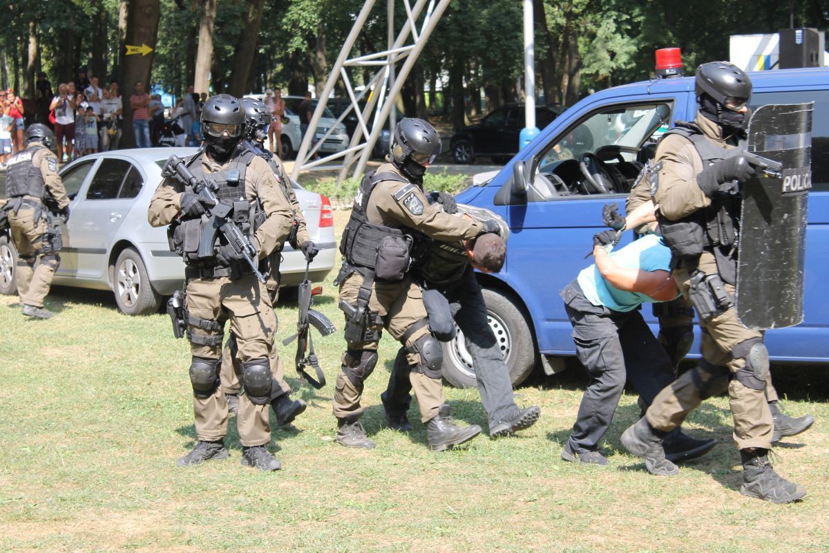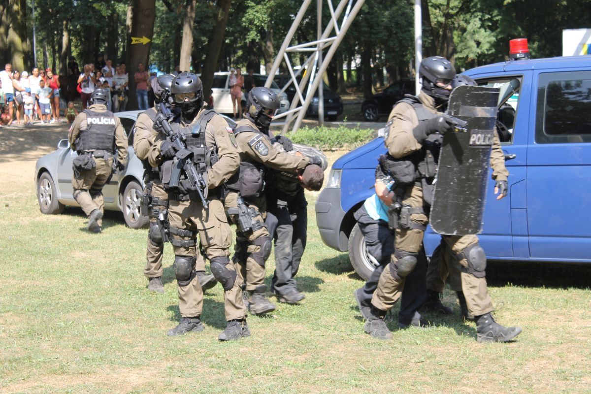 - pohotovostného policajného útvaru KR PZ v Košiciach, ktorými prezentovali simulované zadržanie páchateľov nelegálnej distribúcie zbraní,