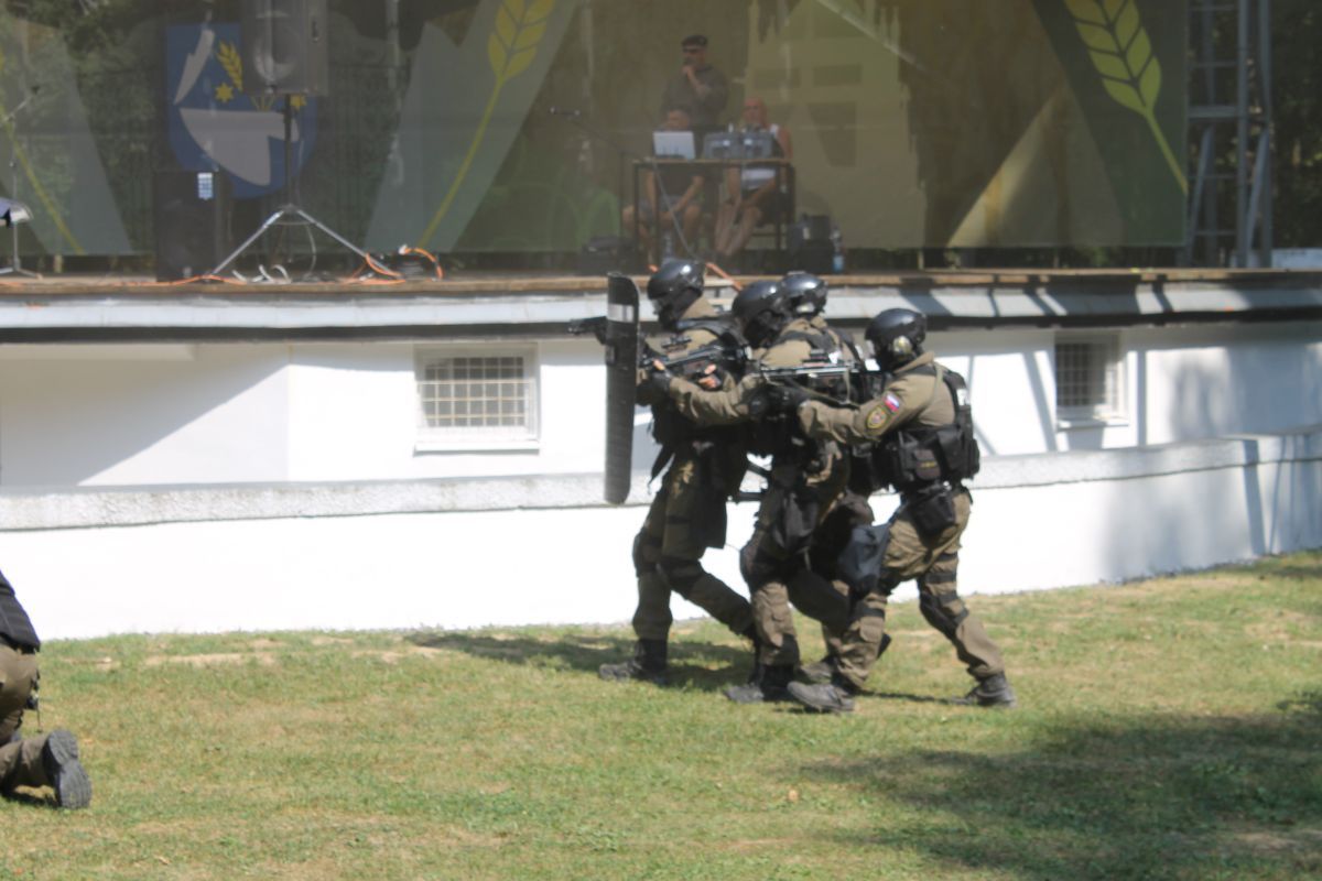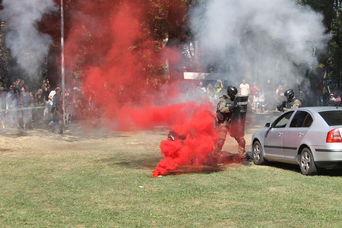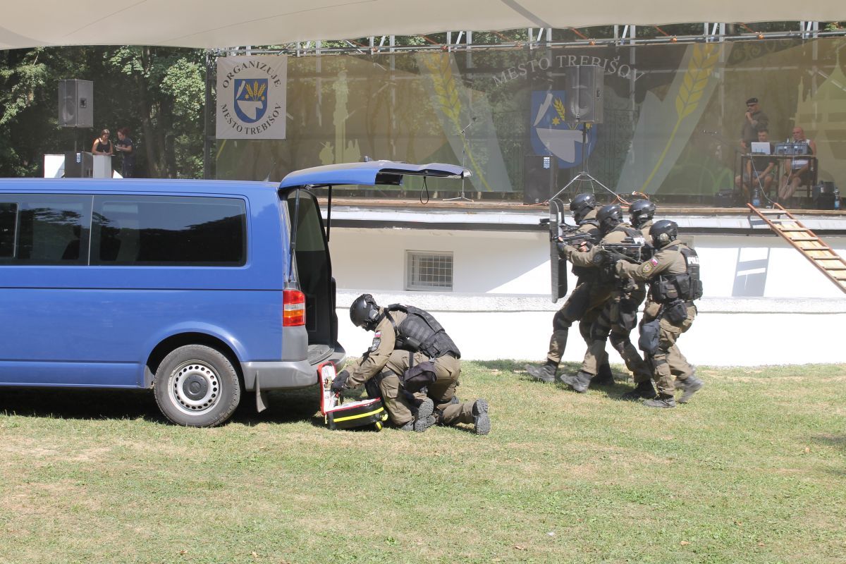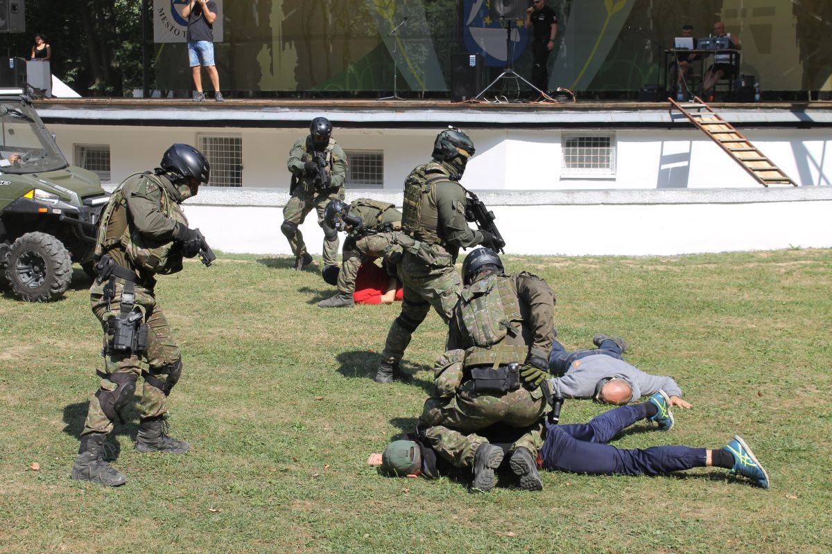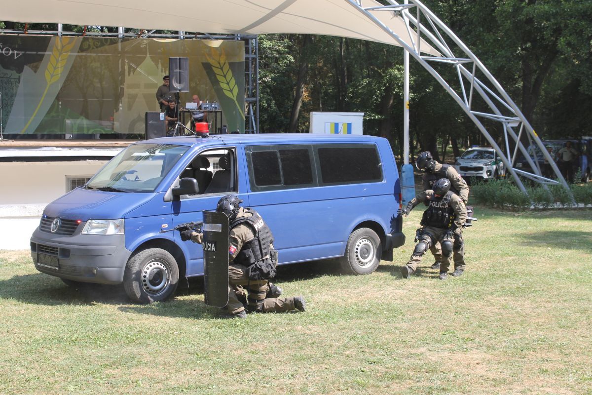 - pohotovostného policajného útvaru KR PZ v Košiciach, ktorými prezentovali simulované zadržanie páchateľov nelegálnej distribúcie zbraní,