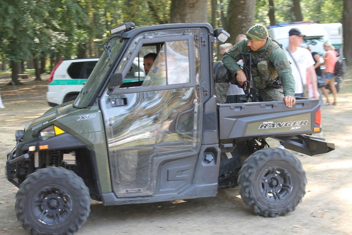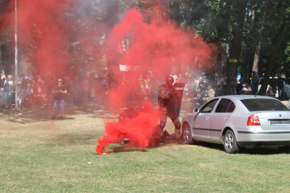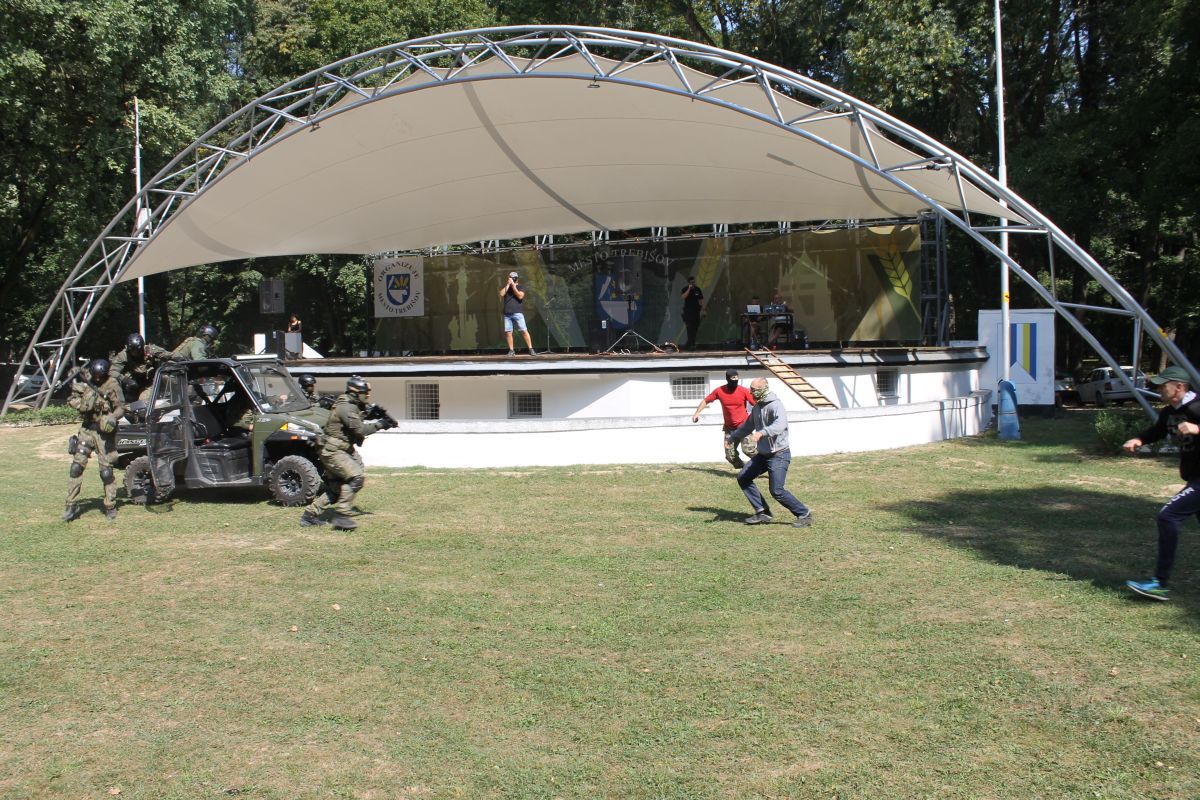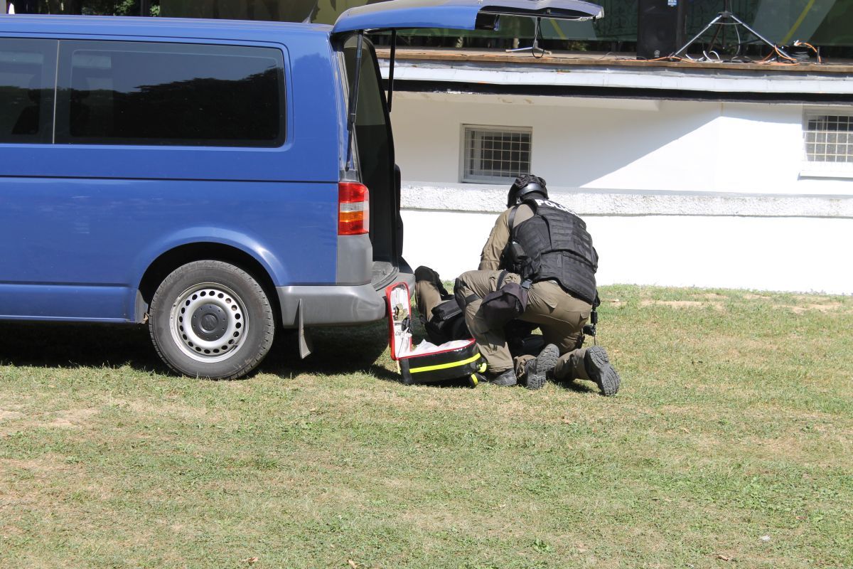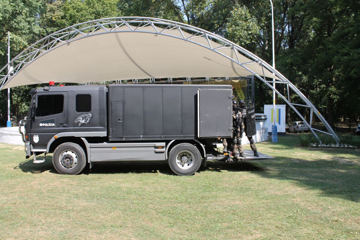 - pohotovostného policajného útvaru KR PZ v Košiciach, ktorými prezentovali simulované zadržanie páchateľov nelegálnej distribúcie zbraní,