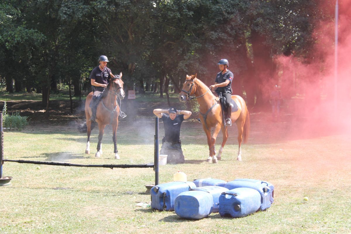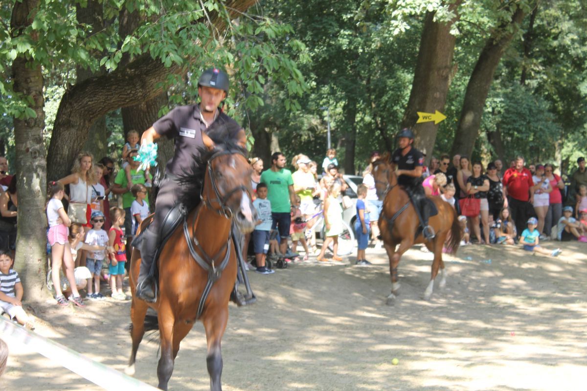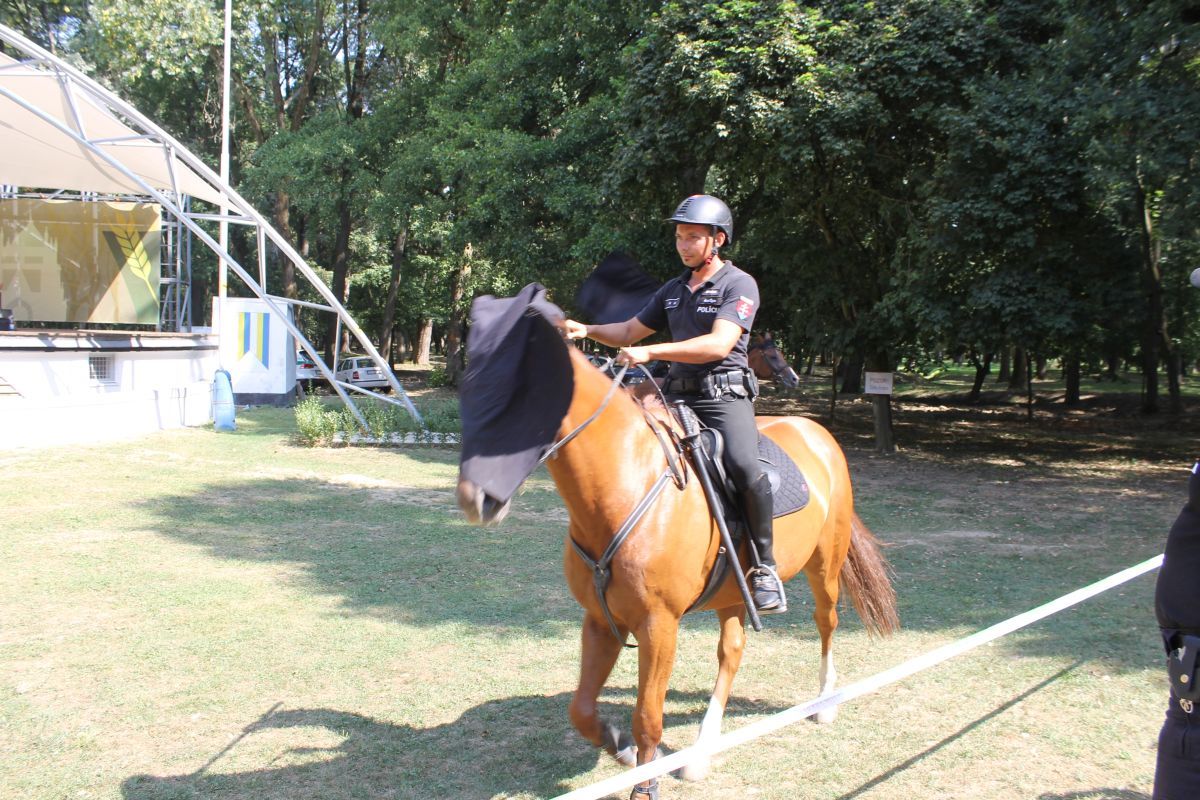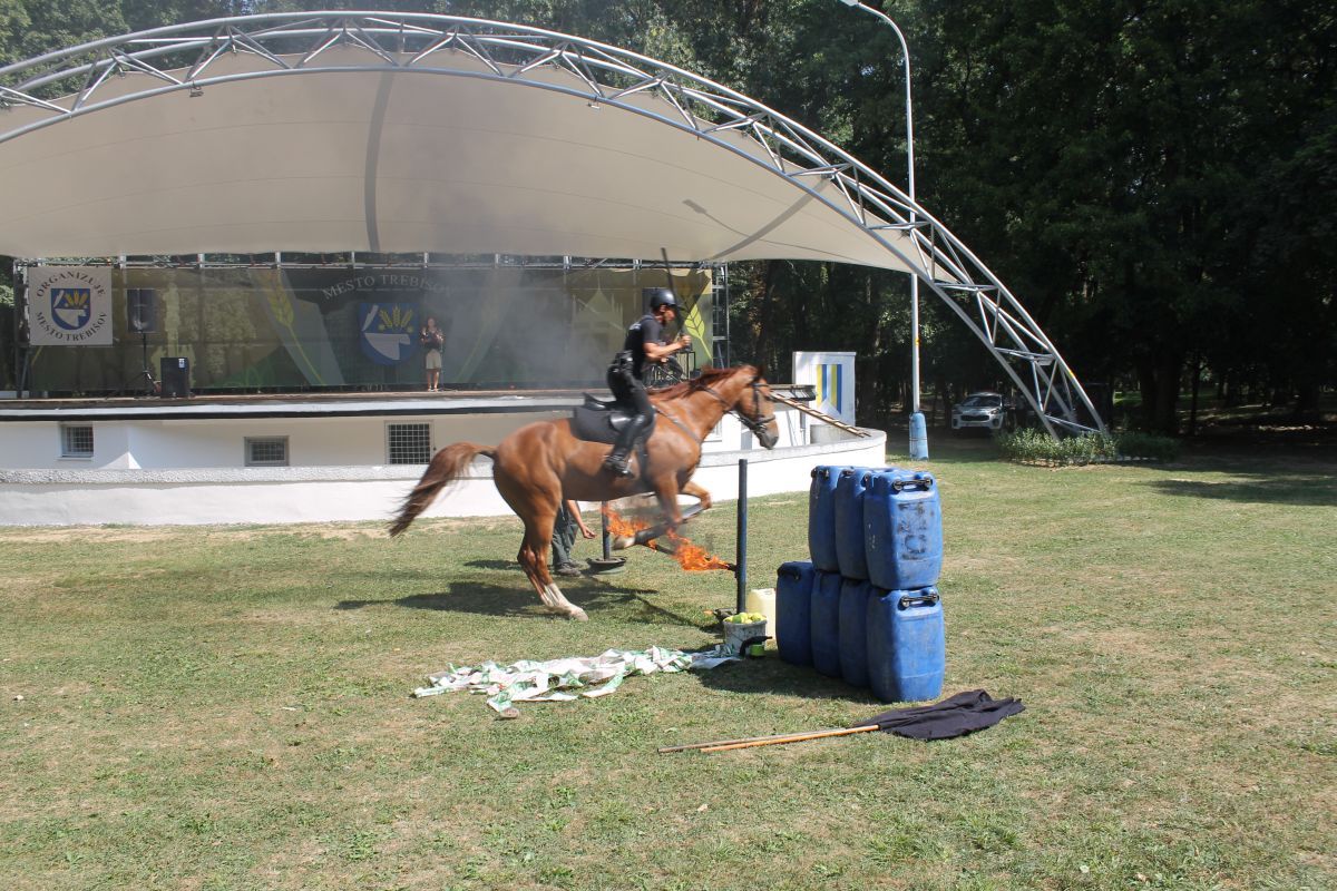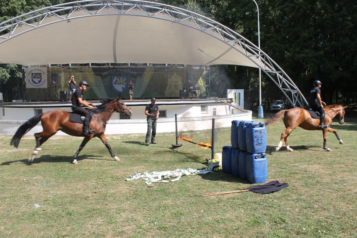 - výcviku služobných koní odd. jazdnej polície v Košiciach, v rámci ktorých bol odprezentovaný pozdrav na koni, práca s vlajkou, sprievod, skok cez oheň, prechod cez znížený podhľad.
