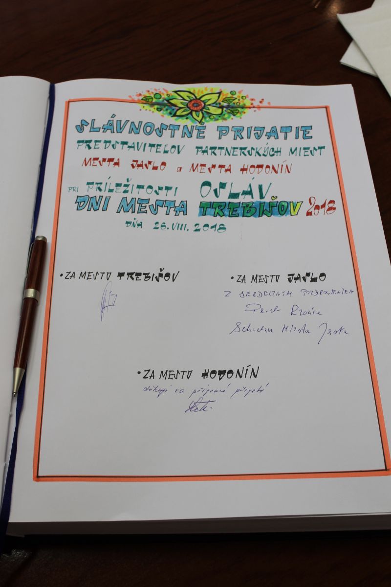 Účasťou na DŇOCH MESTA TREBIŠOV 2018 poctili mesto Trebišov zástupcovia oboch partnerských miest; mesta JASLA (Poľsko) a HODONÍNA (Česká republika).Primátor mesta Trebišov PhDr. Marek Čižmár slávnostne privítal poľskú a českú delegáciu v kancelárii primátora, v budove Mestského úradu v Trebišove.