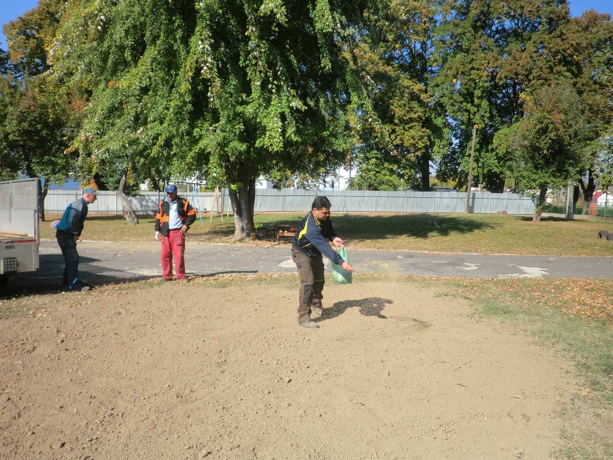 Počas 41. kalendárneho týždňa pracovníci Mestského hospodárskeho strediska zrealizovali v areáli MŠ na Hviezdoslavovej ulici doplnenie pôdy, planírovanie terénu a vysiatie trávnika na plochách po oprave teplovodného potrubia.