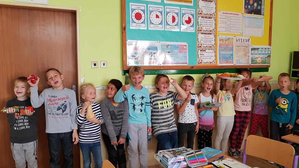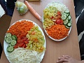 Týždeň sa začal Dňom ovocia, druhý deň patril zelenine. Vedúca školskej jedálne p. Chomová a jej šikovné pani kuchárky pripravili žiakom a žiačkam rôzne ovocné a zeleninové taniere plné vitamínov.
