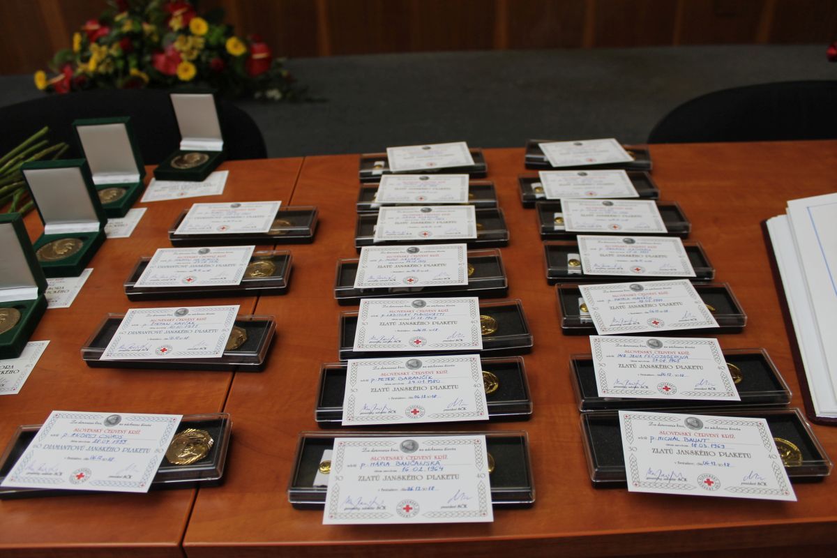Všetkým pozvaným darcom odovzdali plakety prof. MUDr. J. Janského a Kňazovického medaily riaditeľka ÚzS SČK Trebišov Ingrid Tomášová, predsedníčka Územnej rady ÚzS SČK v Trebišove RNDr. Ľudmila Mošková a primátor mesta Trebišov PhDr. Marek Čižmár.