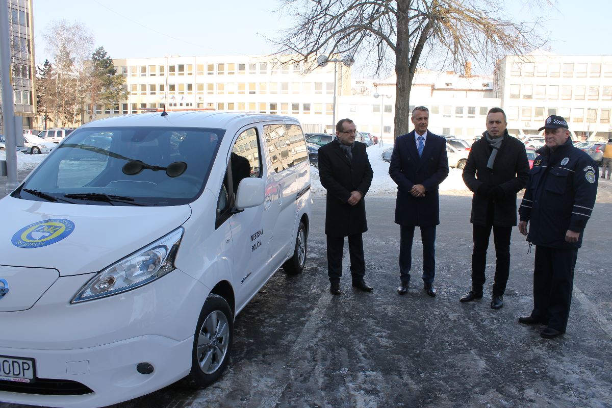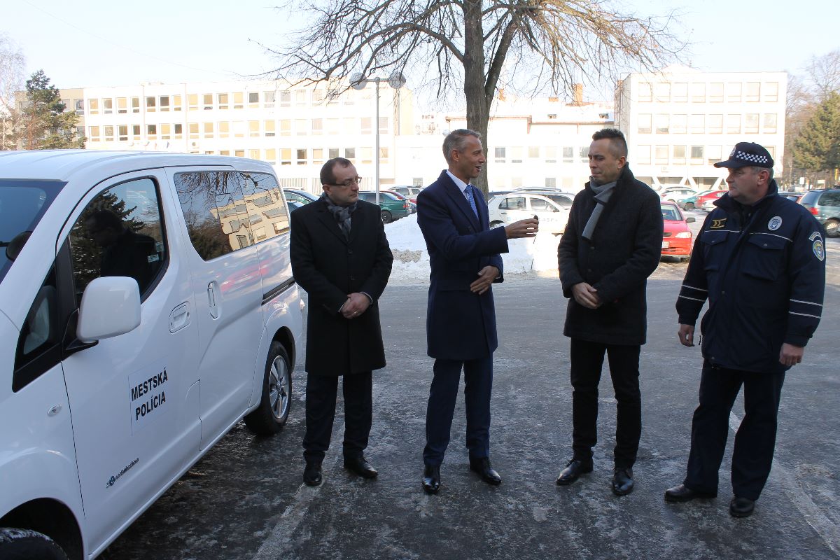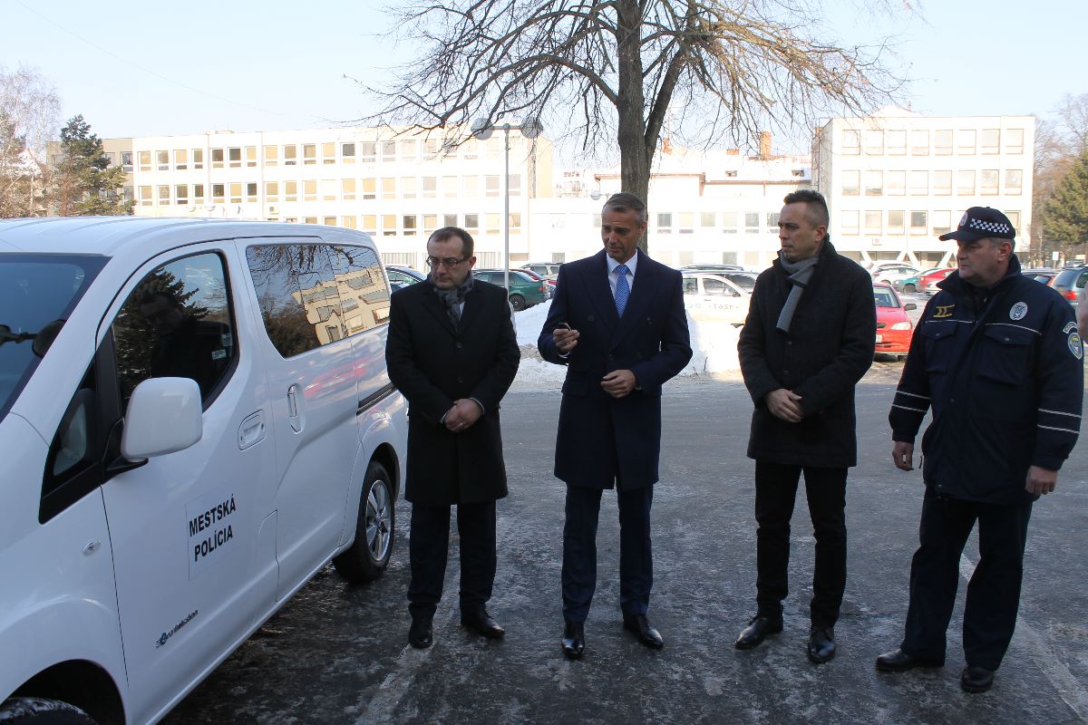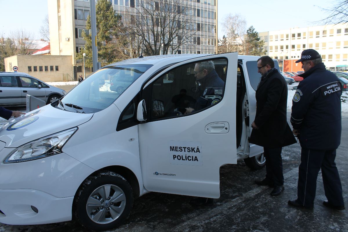 Nové 5-miestné plne elektrické vozidlo zn. NISSAN e-NV200 s ABS s brzdovým asistentom a EBD, prednými halogénovými svetlometmi s nastavením výšky a rekuperačným elektro-hydraulickým brzdovým systémom posilní vozový park mestskej polície. Ekologicky výhodný automobil mesto zakúpilo od spoločnosti AUTOSPOL VLASATÝ, spol. s r. o. Košice.
