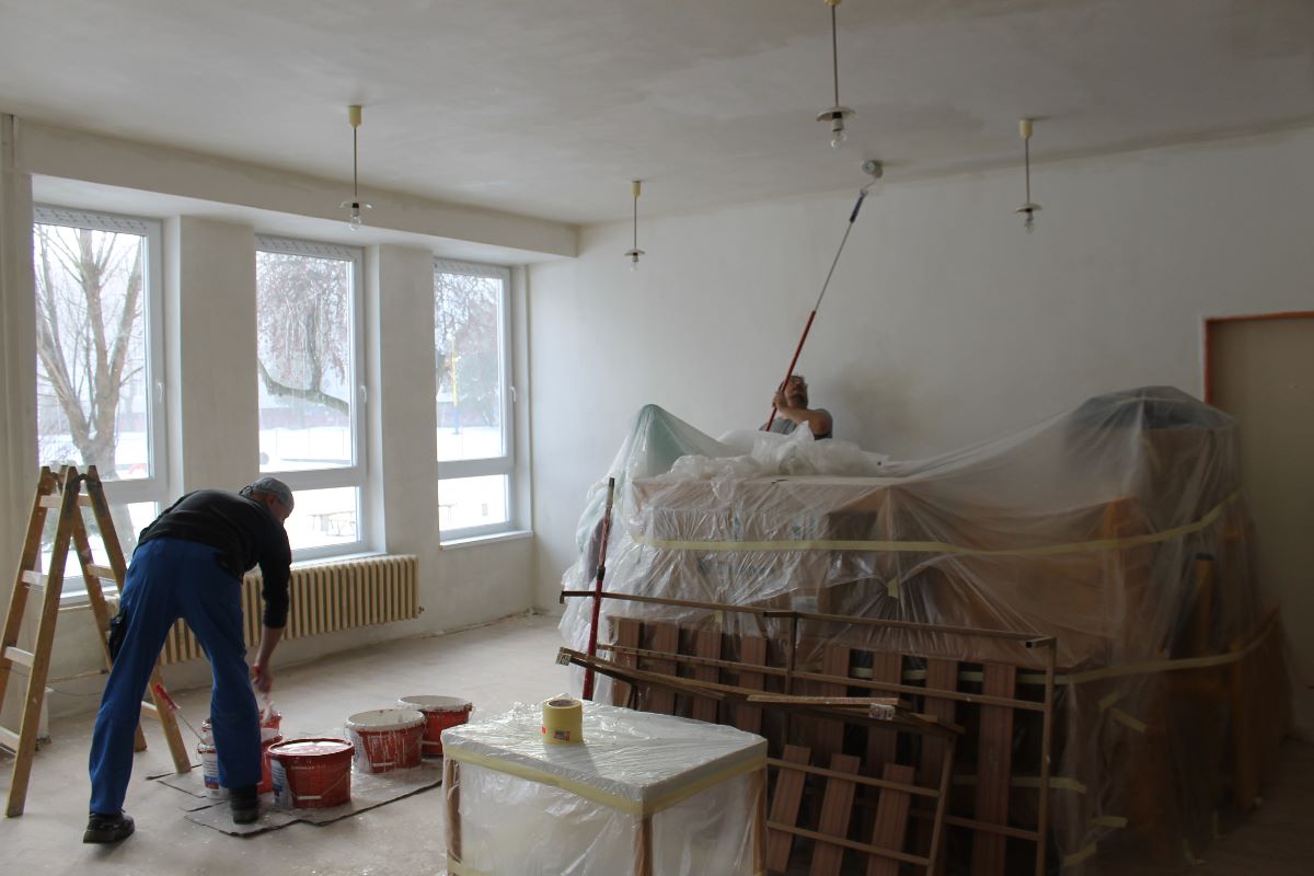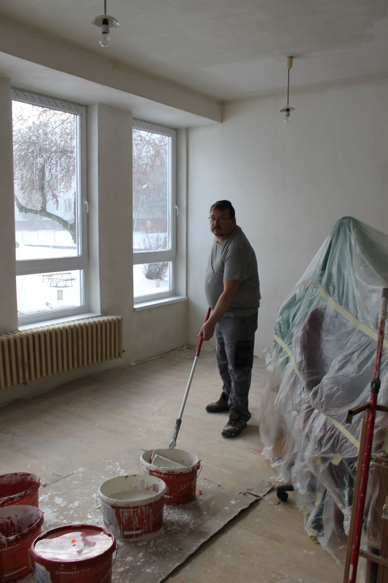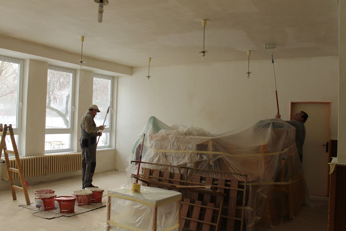 V 3. kalendárnom týždni stavebná skupina mesta Trebišov začala práce v interiéri Materskej školy na Ul. 1. decembra. Pracovníci realizujú opravy s použitím ručnej sadrovej stierky, maľovanie stien aj stropu v triedach i v priestoroch chodieb a WC zariadení.