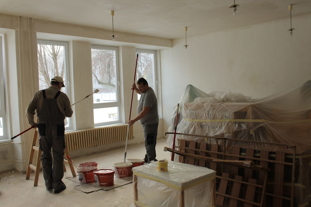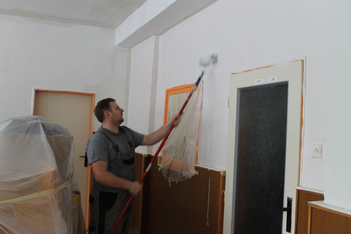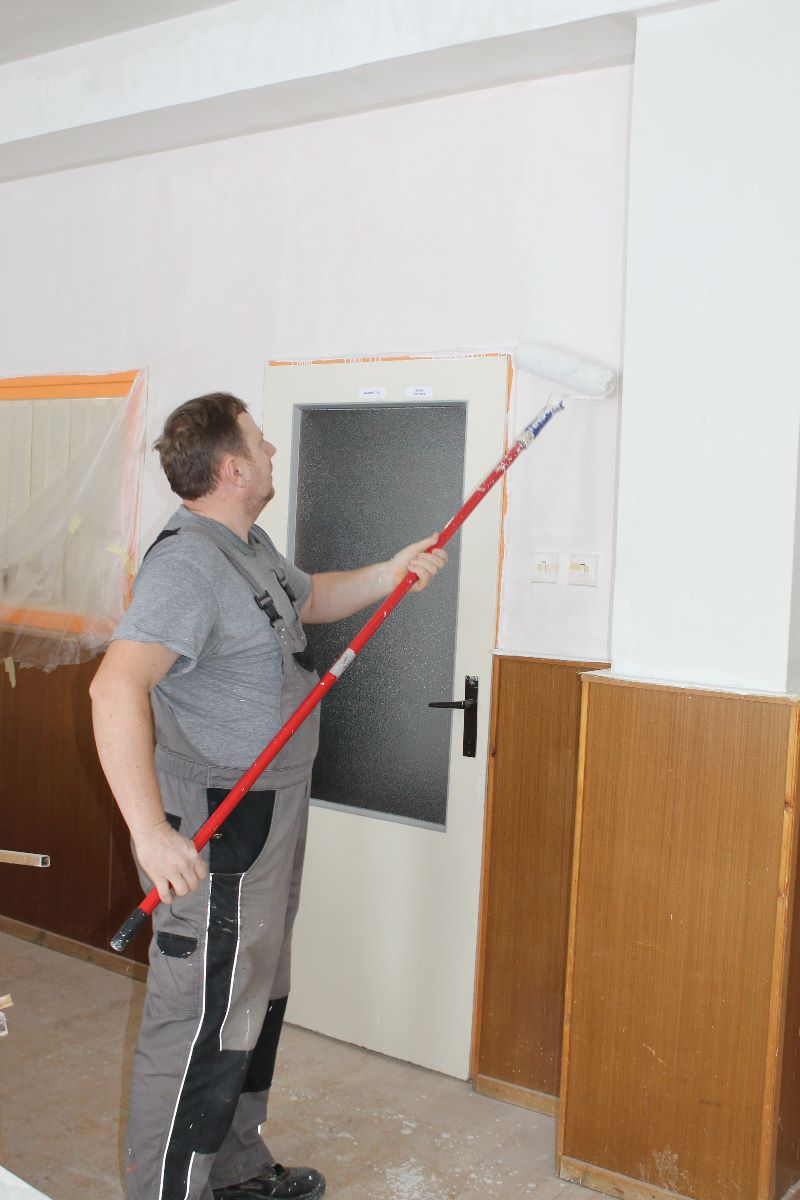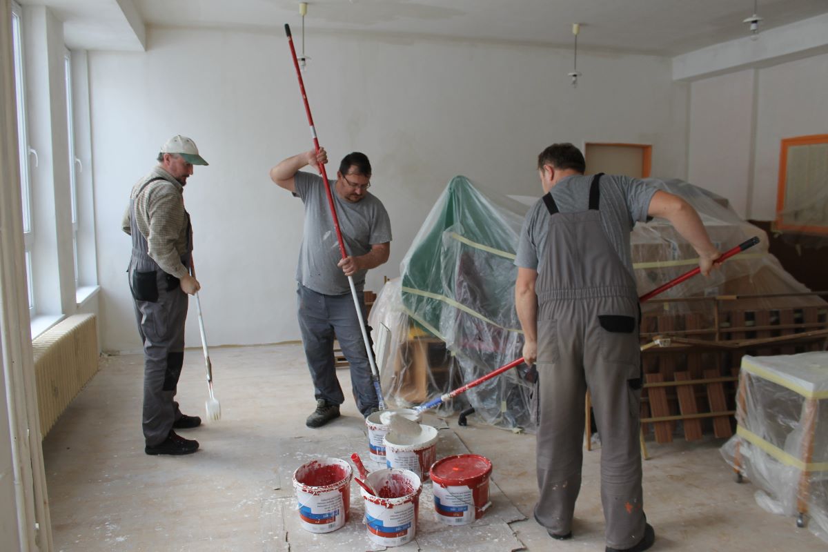 V 3. kalendárnom týždni stavebná skupina mesta Trebišov začala práce v interiéri Materskej školy na Ul. 1. decembra. Pracovníci realizujú opravy s použitím ručnej sadrovej stierky, maľovanie stien aj stropu v triedach i v priestoroch chodieb a WC zariadení.