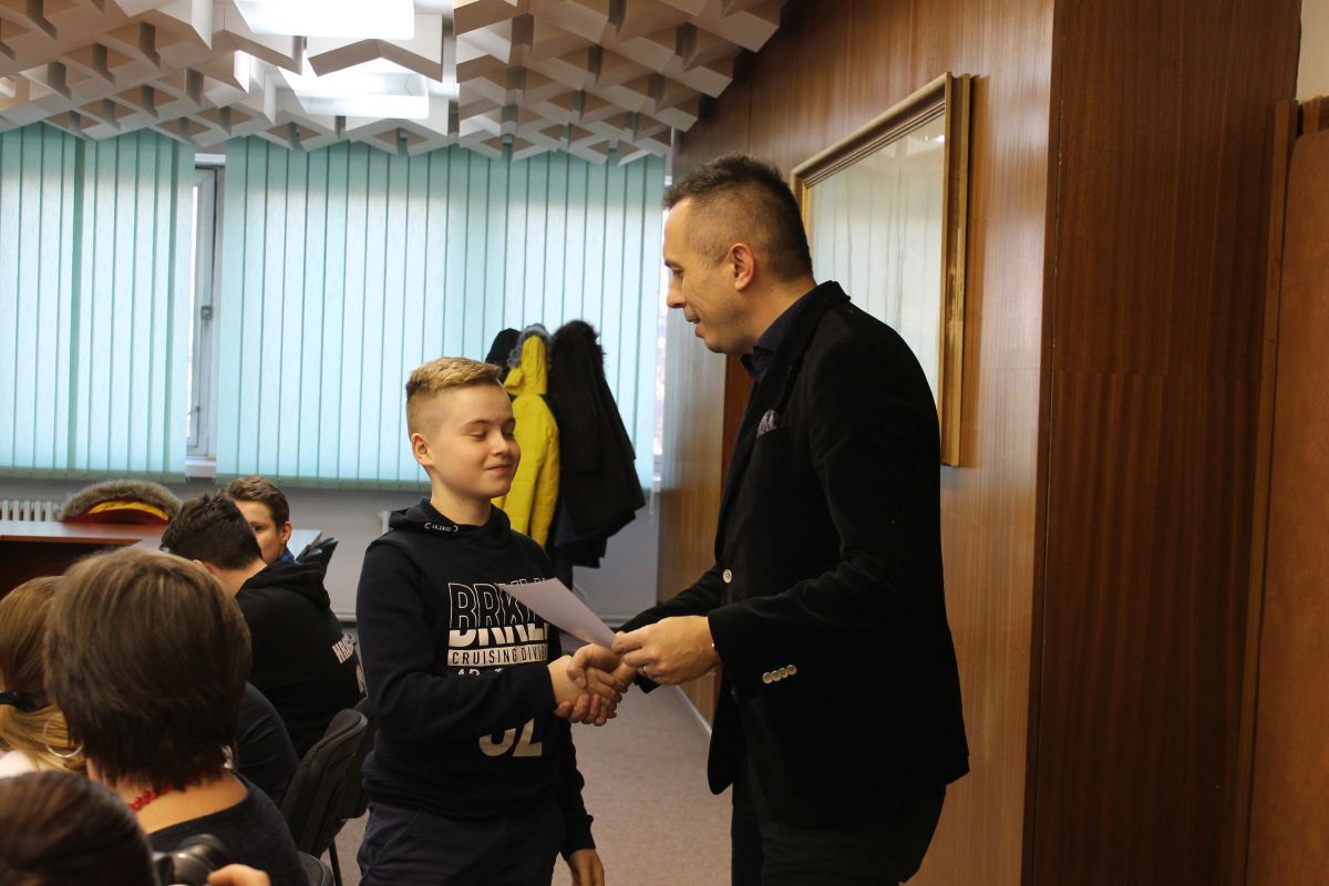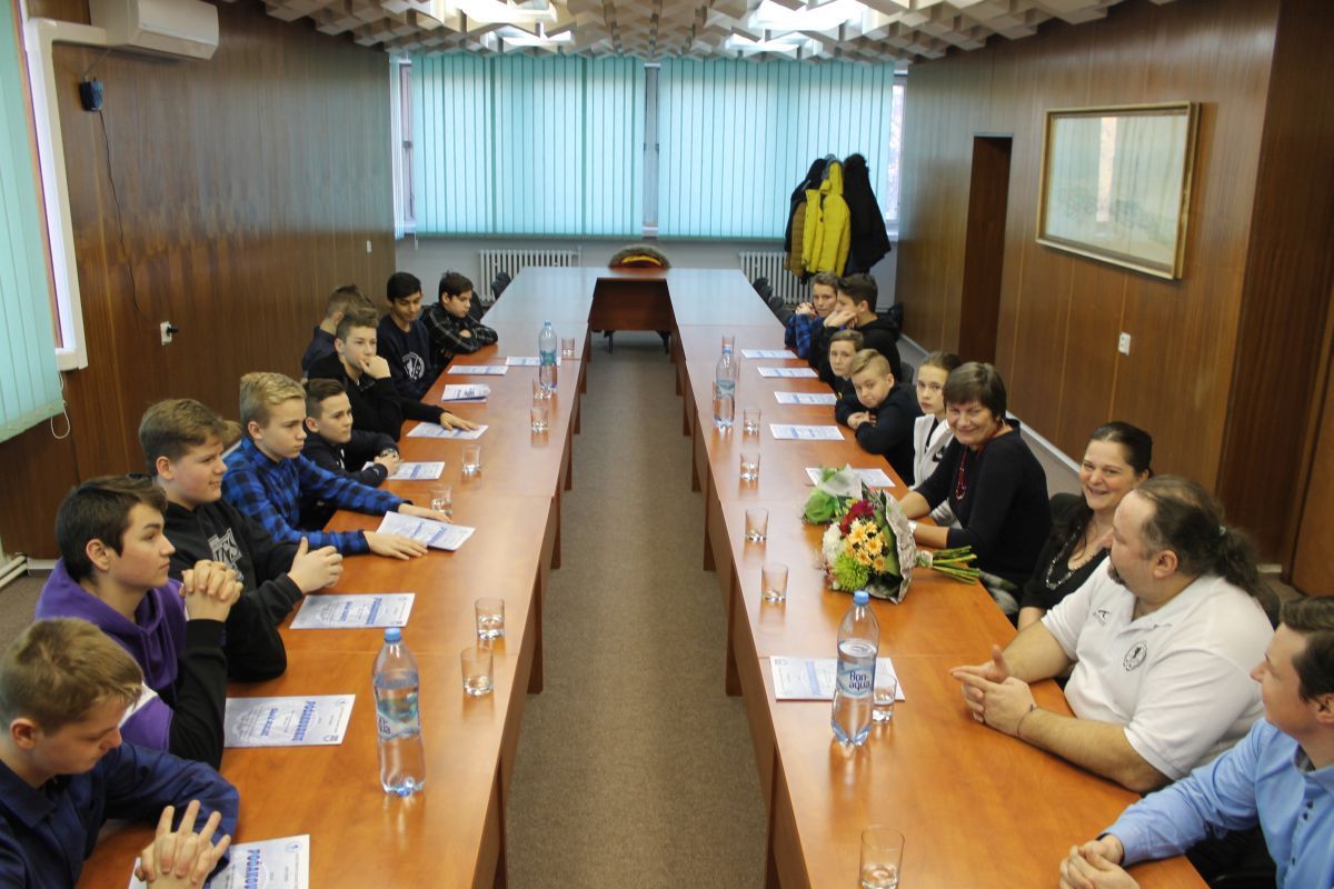 Stretnutie sa uskutočnilo pri príležitosti historicky prvého postupu hráčov zo základnej časti do nadstavbovej časti 1. ligy starších žiakov – 1-5, U-15 regiónu Východ v sezóne 2018/2019. Primátor zablahoželal hokejistom k úspechu, poďakoval im za reprezentáciu klubu a mesta Trebišov a odovzdal im ďakovné listy.