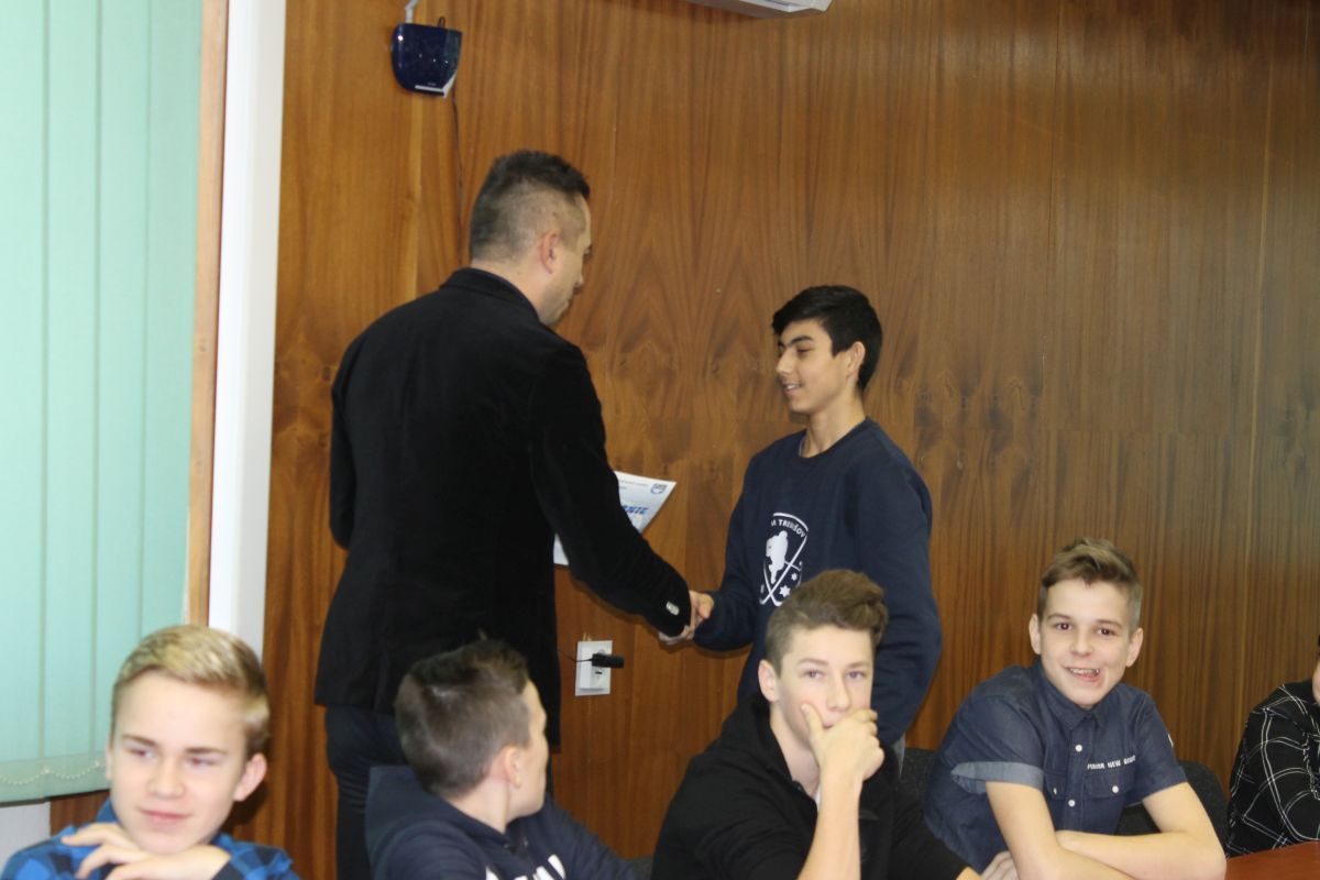 Piatok 11. 01 .2019 primátor mesta Trebišov PhDr. Marek Čižmár privítal na pôde mestského úradu hráčov 1. ligy starších žiakov 8. ročníka Mestského športového klubu mládeže (MŠKM) Trebišov spolu trénerom Igorom Šalatom a riaditeľom klubu Mgr. Dušanom Kobeľom, MBA.
