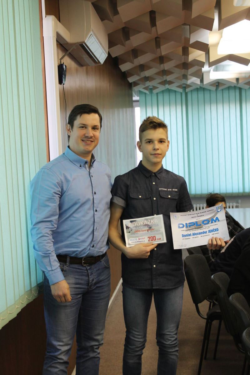 Motivačne pôsobil aj udelený diplom najproduktívnejšiemu hráčovi 1. ligy starších žiakov 8. ročníka po základnej časti Danielovi Alexandrovi Jenčkovi. Mimoriadne ocenený hráč nazbieral v rámci celého Slovenska najvyšší počet bodov, kedy v pätnástich odohratých zápasoch zaznamenal 64 gólov a 44 asistencií.