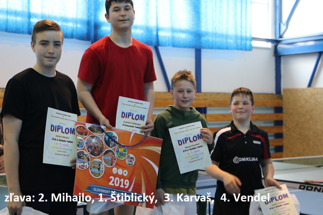 Konečné poradie Veľkonočného turnaja žiakov základných škôl mesta Trebišov: