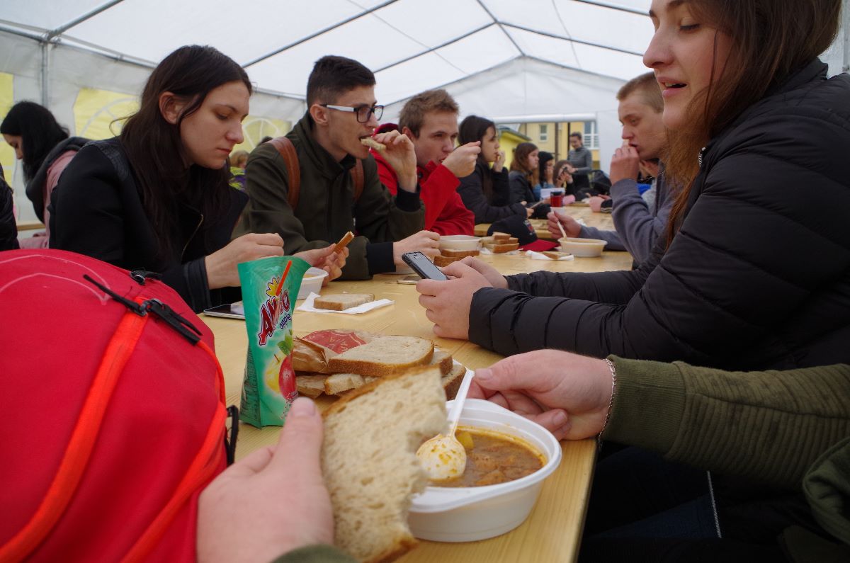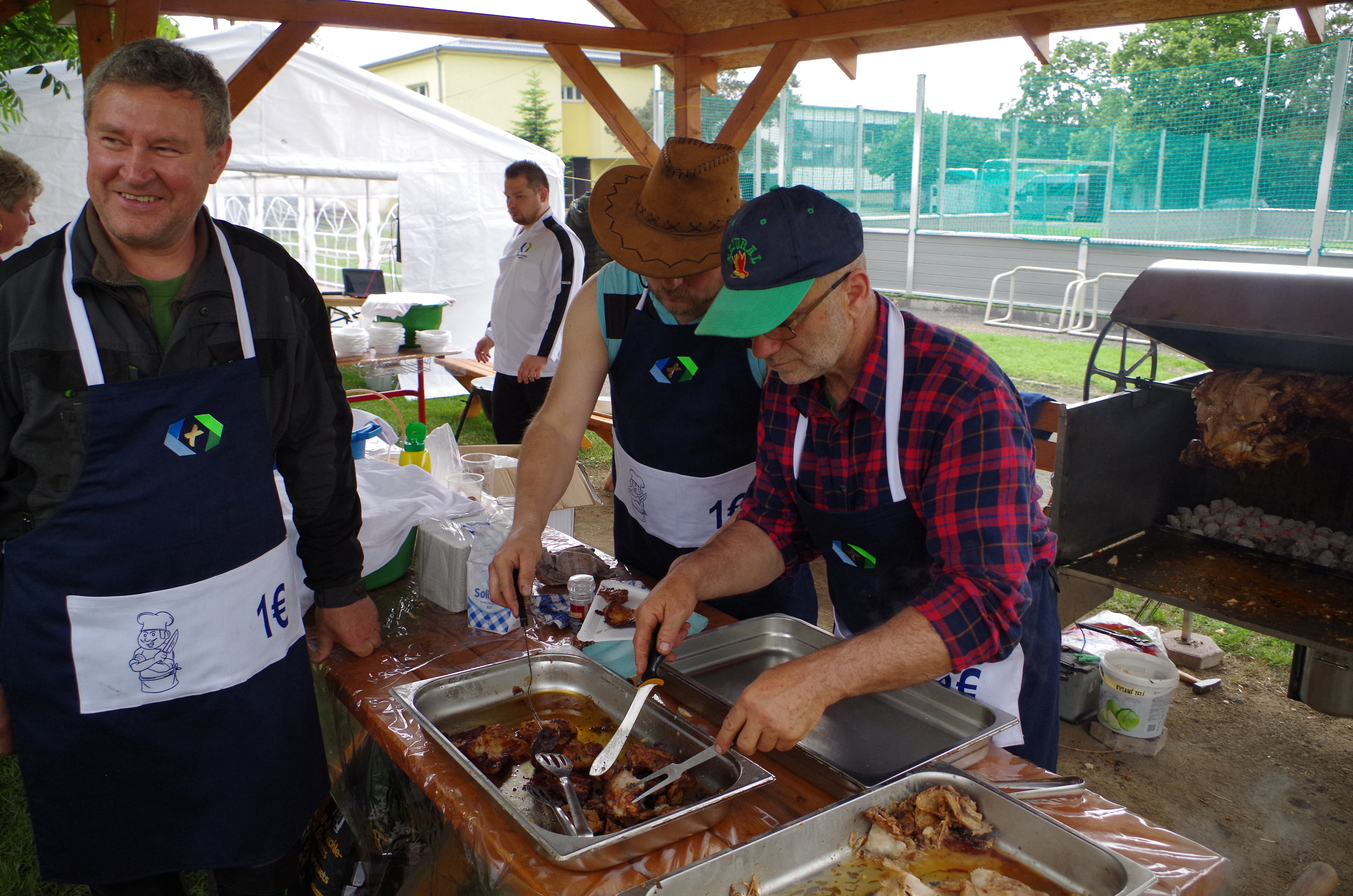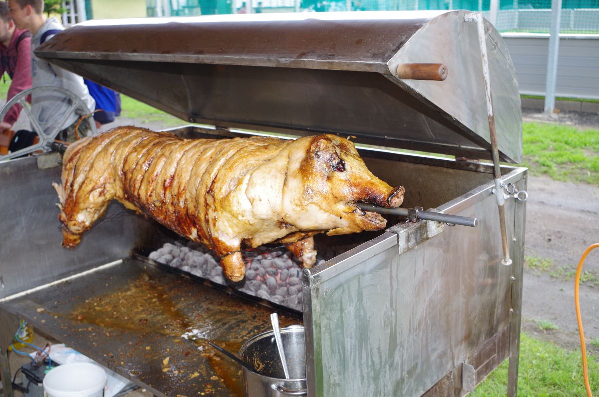 Pre zúčastnených hostí, žiakov, učiteľov uvaril personál a majstri strednej odbornej školy guľáš a chutné pečené prasiatko