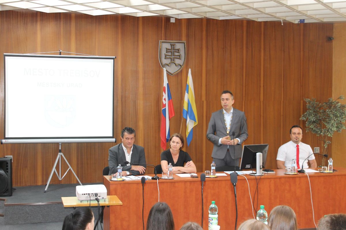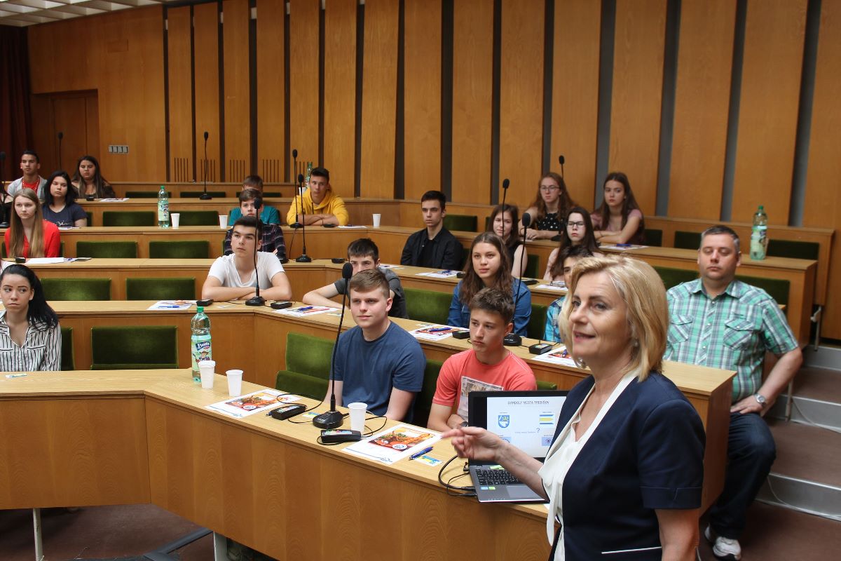 V úvode im vedúca odd. školstva Mgr. Danica Gajdošová priblížila základné charakteristiky mesta a jednotlivých oddelení úradu a Mgr. Tomáš Vasiľ zo Zemplínskej knižnice v Trebišove oboznámil žiakov s prezentáciou, ktorá bola venovaná tohtoročným výročiam - 765. výročiu prvej písomne zmienky o Trebišove, 90. výročiu vyhlásenia Trebišova za okresné mesto, 100. výročiu vyhlásenia Trebišova ako sídla Zemplínskej župy.