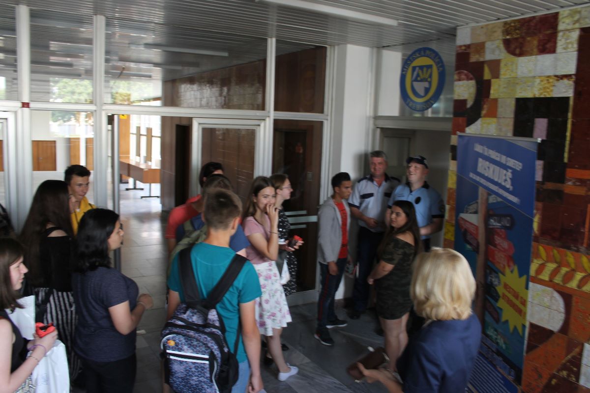 Na úrade bolo pre školopovinných žiakov a žiačky pripravené malé občerstvenie. Posledným bodom programu DOD boli ukážky pracovných činnosti mestských policajtov. V priestoroch MsP si prezreli operačné stredisko, kde je nainštalovaný kamerový systém. Príslušníci mestskej polície priblížili, ako vyzerá odchyt túlavých a zabehnutých zvierat, policajný výstroj aj výzbroj, ale i činnosť hliadky v službe. Pozornosť získala aj ukážka montáže a demontáže tzv. papuče na zabránenie odjazdu motorového vozidla. Deviataci si vyskúšali elektromobil a zaujali ich aj skútre a horské bicykle, ktoré príslušníci MsP používajú najmä v letnom období.