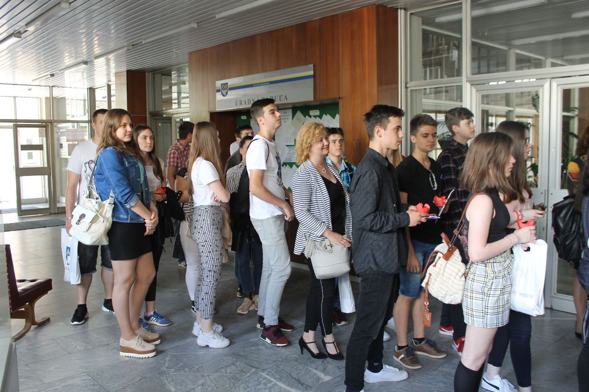 Piati najaktívnejší boli mestom odmenení. Načreli aj do činnosti referentov na jednotlivých úsekoch úradu. Primátor prijal deviatakov vo svojej kancelárii aj v zasadačke, kde ich oboznámil so svojou funkciou a úlohami, ktoré z nej plynú.