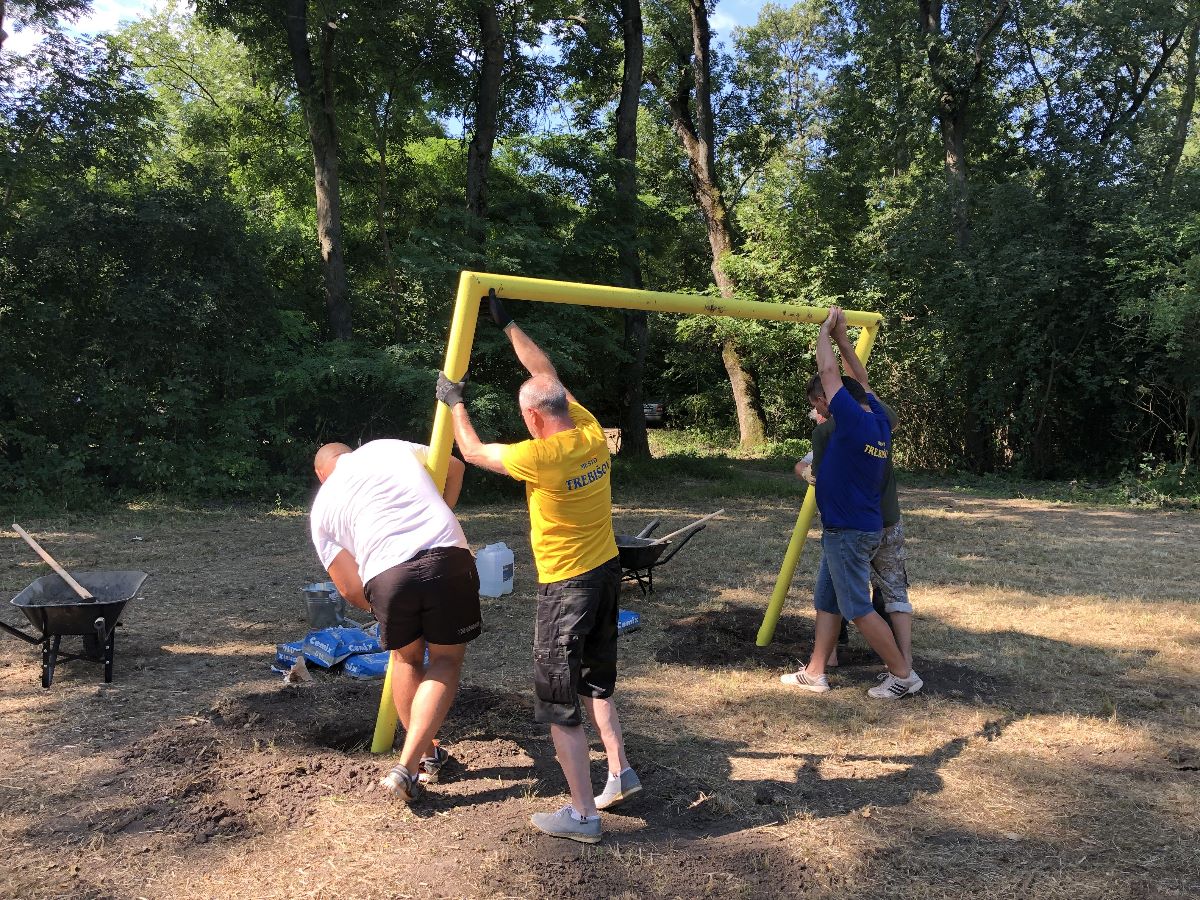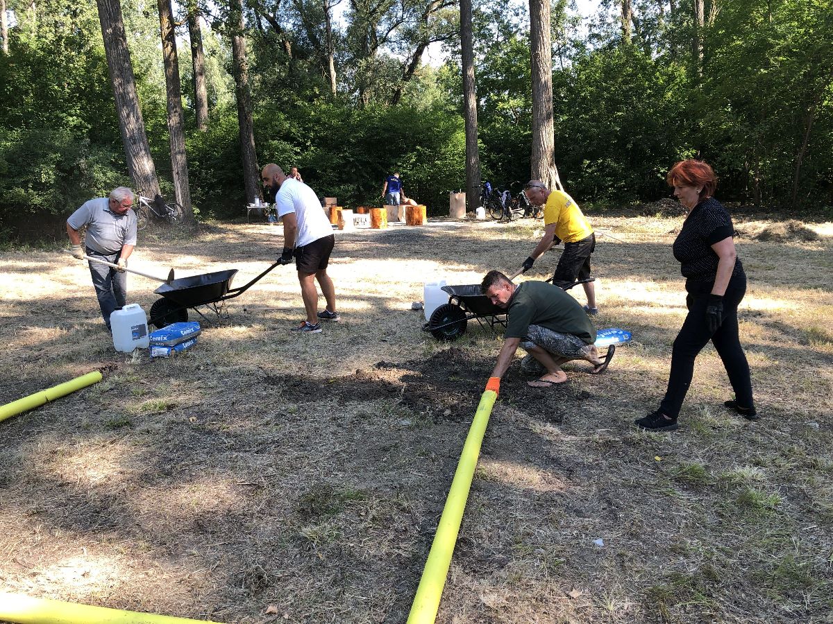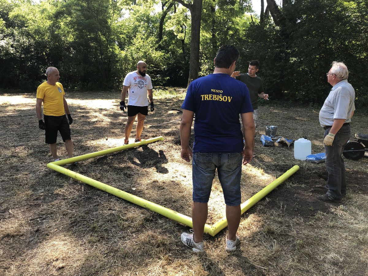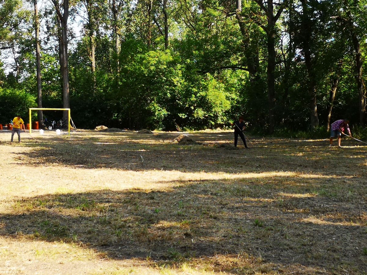 Počas jedného júlového víkendu sa na ňom uskutočnila prvá z brigád, do ktorej sa zapojili dobrovoľníci z radov vedenia a zamestnancov mesta, poslancov mestského zastupiteľstva. V rámci nej natreli ochranným náterom sedenia pri ohnisku, osadili futbalové bránky, vyzbierali orezané náletové dreviny, očistili a vyhrabali celý priestor ihriska.