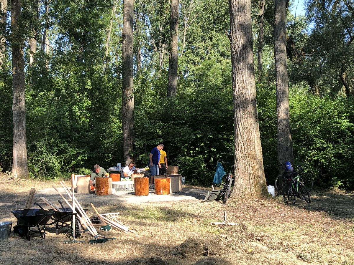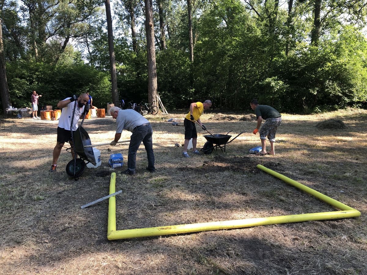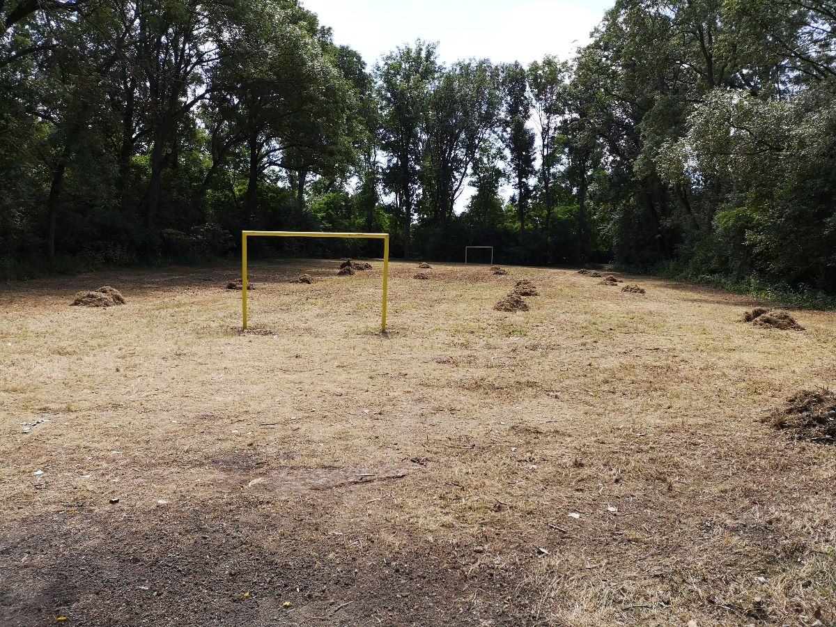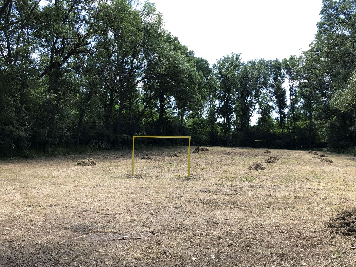 Počas jedného júlového víkendu sa na ňom uskutočnila prvá z brigád, do ktorej sa zapojili dobrovoľníci z radov vedenia a zamestnancov mesta, poslancov mestského zastupiteľstva. V rámci nej natreli ochranným náterom sedenia pri ohnisku, osadili futbalové bránky, vyzbierali orezané náletové dreviny, očistili a vyhrabali celý priestor ihriska.