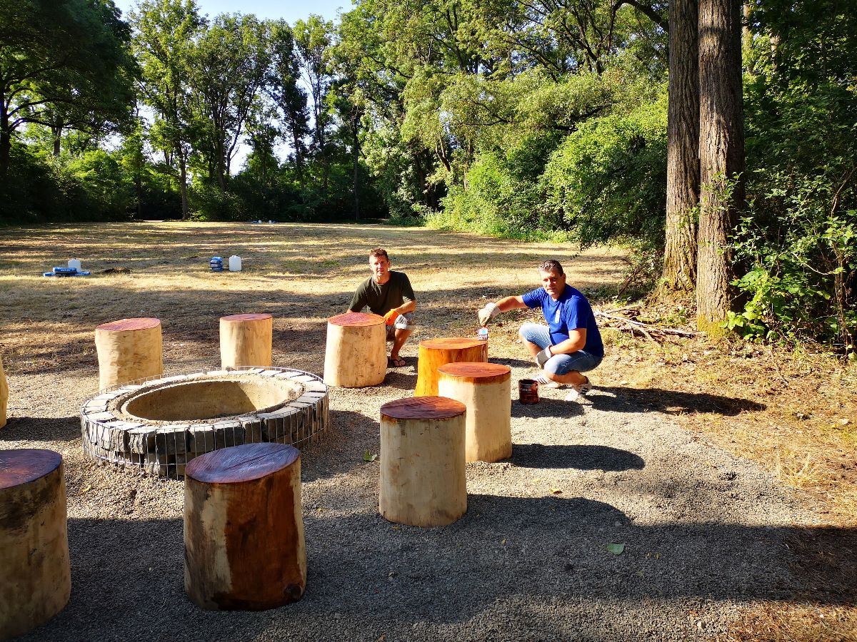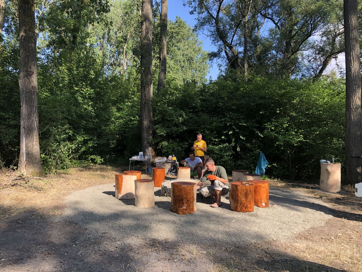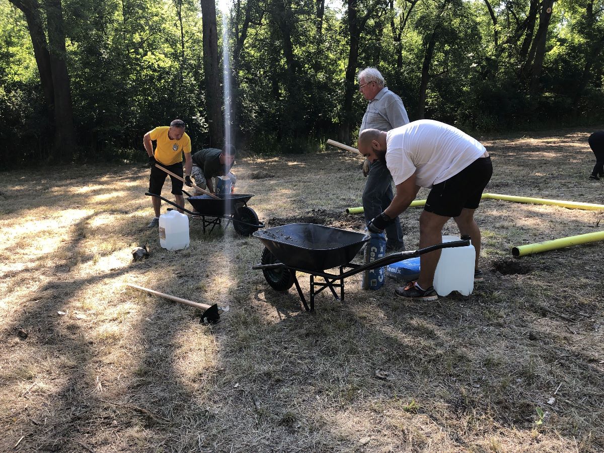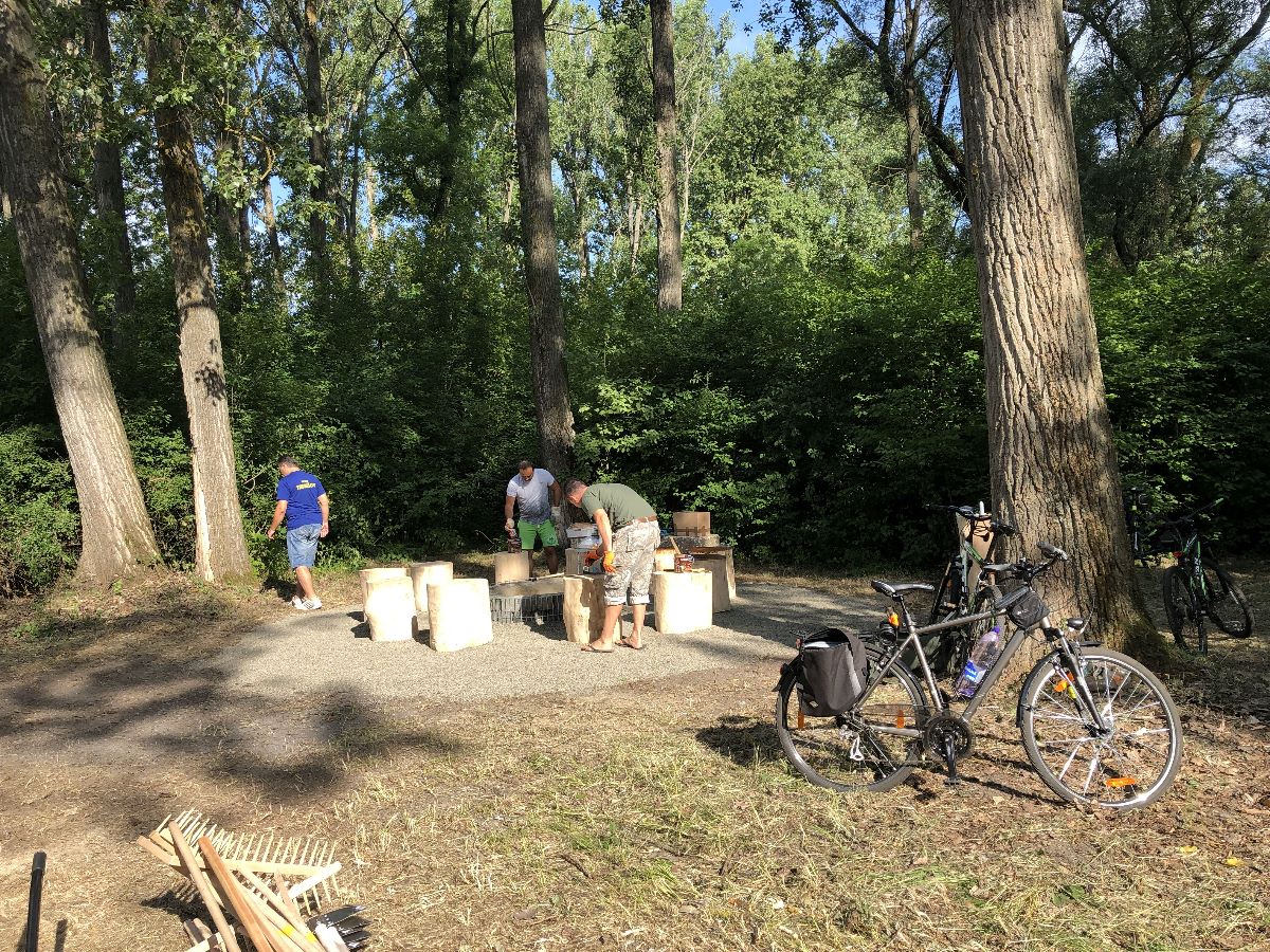 Počas jedného júlového víkendu sa na ňom uskutočnila prvá z brigád, do ktorej sa zapojili dobrovoľníci z radov vedenia a zamestnancov mesta, poslancov mestského zastupiteľstva. V rámci nej natreli ochranným náterom sedenia pri ohnisku, osadili futbalové bránky, vyzbierali orezané náletové dreviny, očistili a vyhrabali celý priestor ihriska.