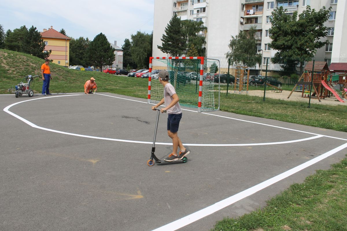 Vysúťažený dodávateľ športovej výbavy namontoval na asfaltový povrch ihriska na sídl. 1. decembra, sídl. Stred a na trávnatú plochu na sídl. Škultétyho spolu 5 bránok na hádzanú a futbal, 3 hokejové bránky a 3 koše na basketbal. Mesto zároveň zabezpečilo čiarovanie jednotlivých ihrísk.