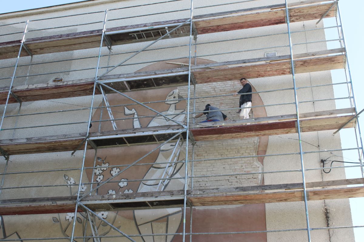 Dlhodobo chátrajúca freska na budove KaSS dostáva lepší vzhľad