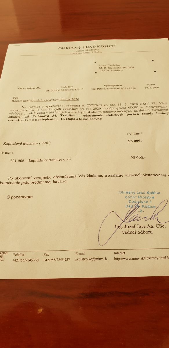 Mesto Trebišov získalo 95.000 EUR na 2. etapu riešenia statických porúch, rekonštrukcie a zateplenia fasády ZŠ „SEVER“. Vďaka finančným prostriedkom sa už v najbližších dňoch rozbehnú práce, ktorých výsledkom bude vynovenie ďalšej časti budovy. Aj takýmto spôsobom sa samospráva snaží vytvárať primerané a hlavne kvalitné podmienky na realizáciu výchovno-vzdelávacieho procesu v školách a školských zariadeniach na svojom území.