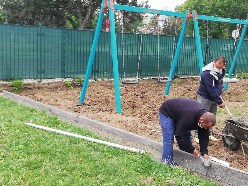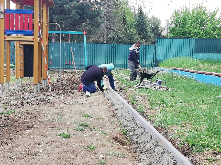 Pracovná skupina mesta realizuje v polovici mája 2020 terénne úpravy areálu mestského kúpaliska. V rámci činnosti pracovníci vytýčili priestor okolo novovybudovaného detského centra, osadili záhradné obrubníky a v najbližších dňoch zrealizujú konečnú úpravu povrchu terénu.