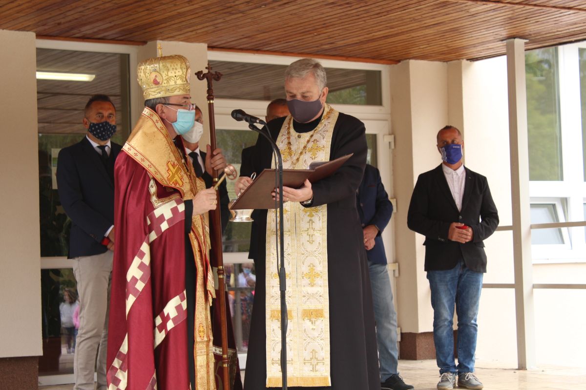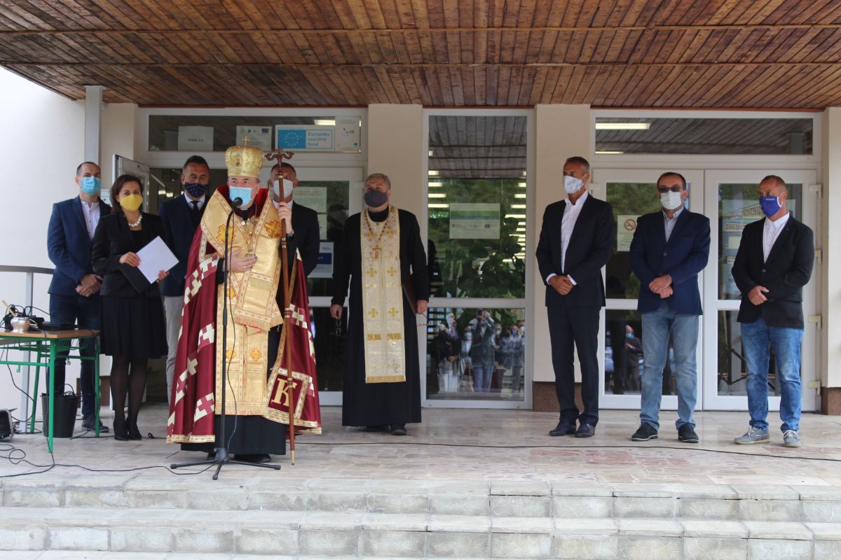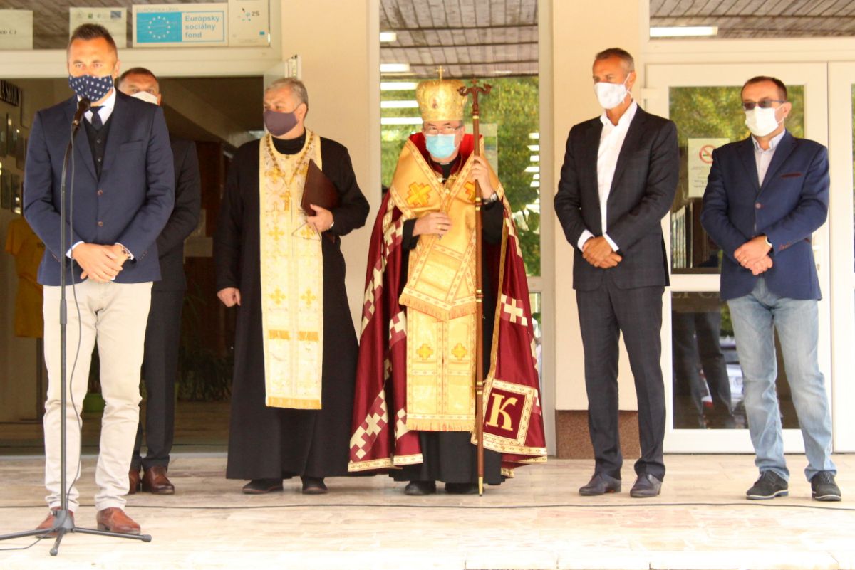 Arcibiskup vladyka Cyril Vasiľ v závere slávnostného otvorenia posvätil obnovenú budovu školy.