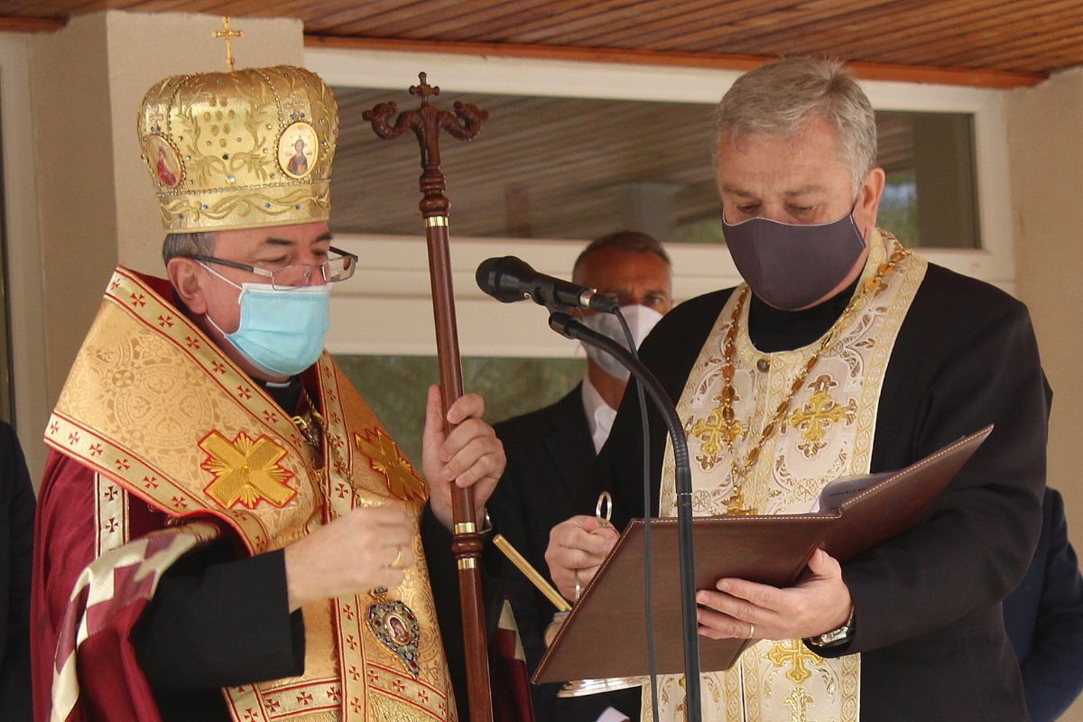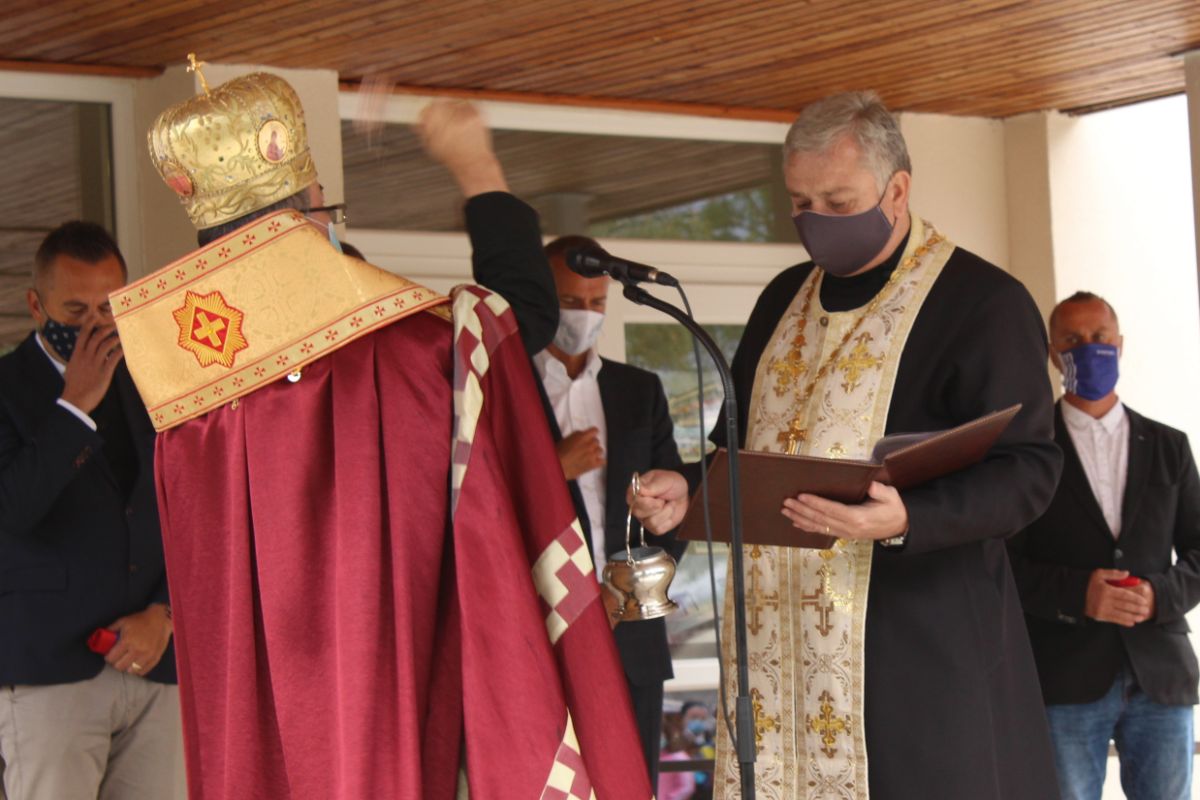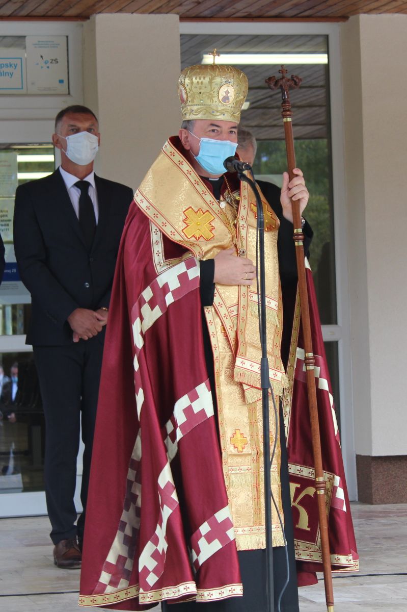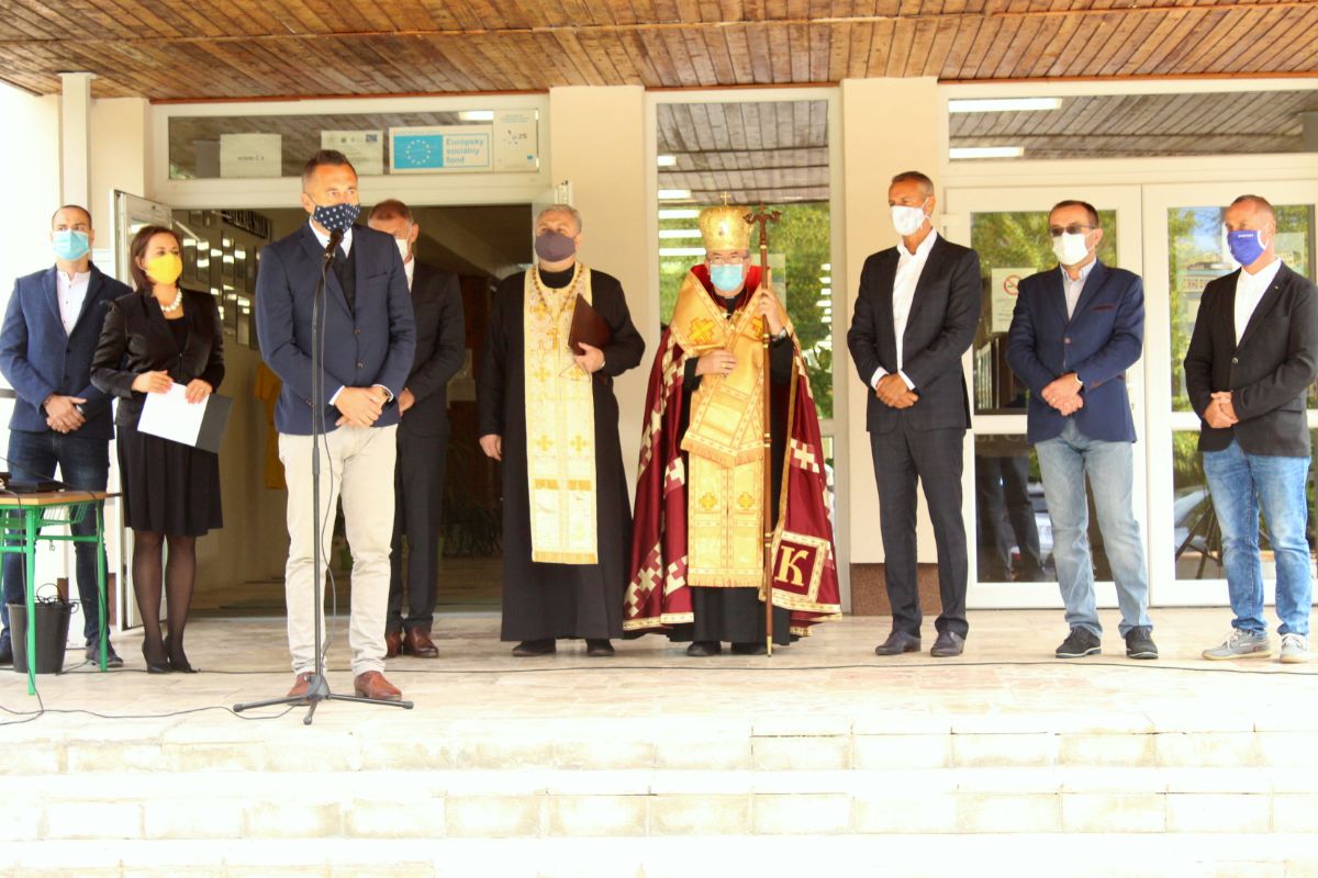 Arcibiskup vladyka Cyril Vasiľ v závere slávnostného otvorenia posvätil obnovenú budovu školy.