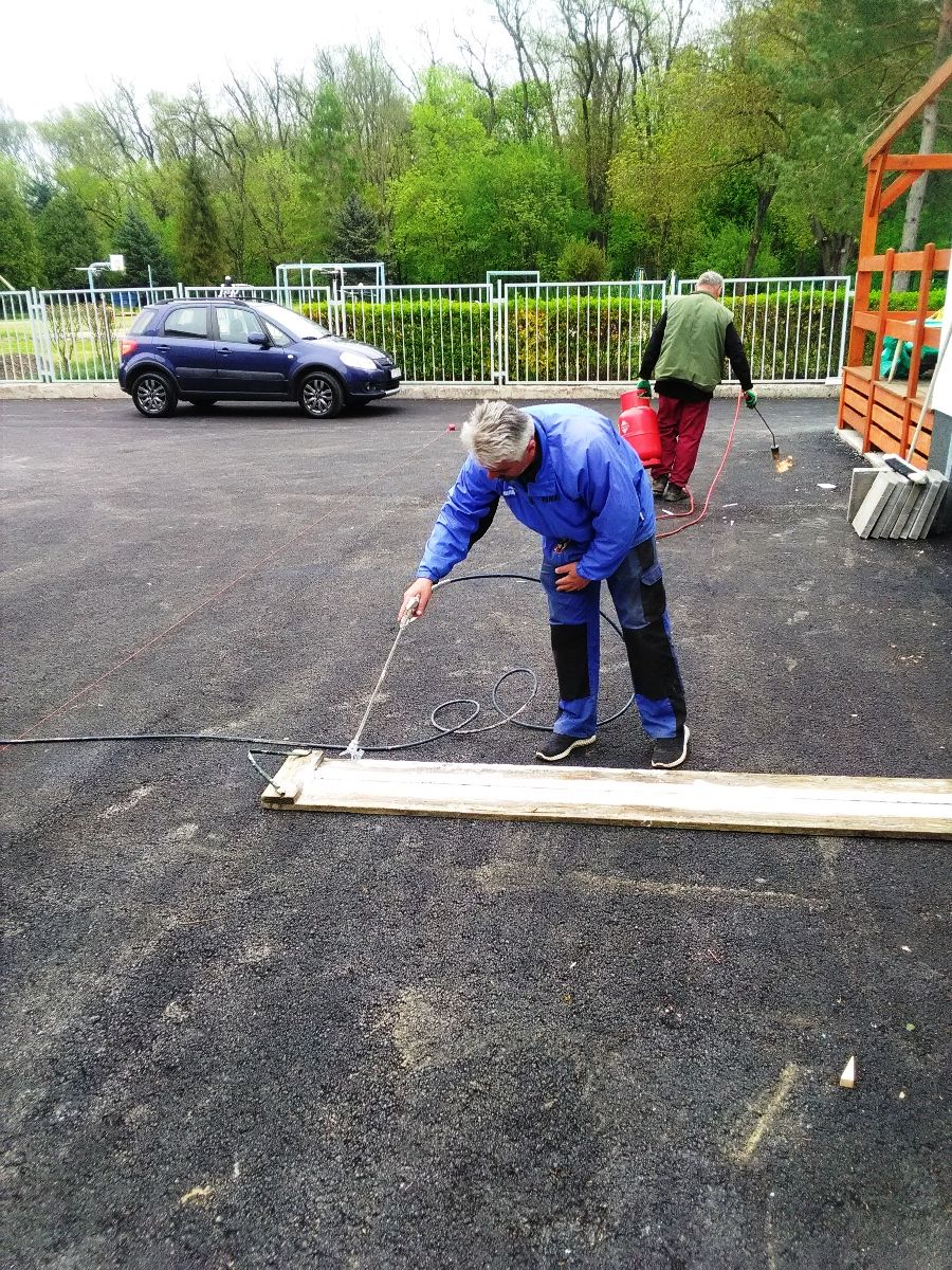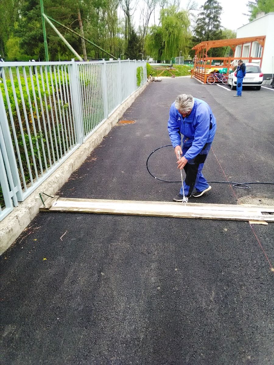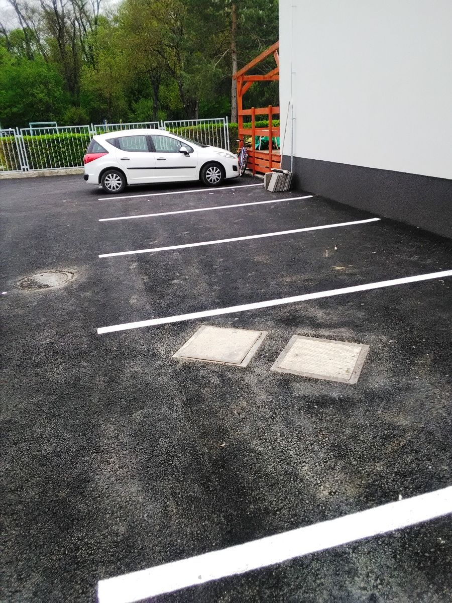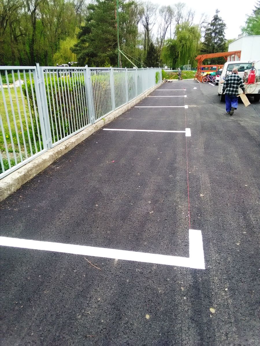 Piatok 7. 5. 2021 pracovníci Technických služieb mesta označili vodorovným dopravným značením 12 novovybudovaných parkovacích miest, 5 miest s kolmým a 7 miest s pozdĺžnym státím na zrekonštruovanej spevnenej ploche vo východnom dvore Areálu vodných športov.