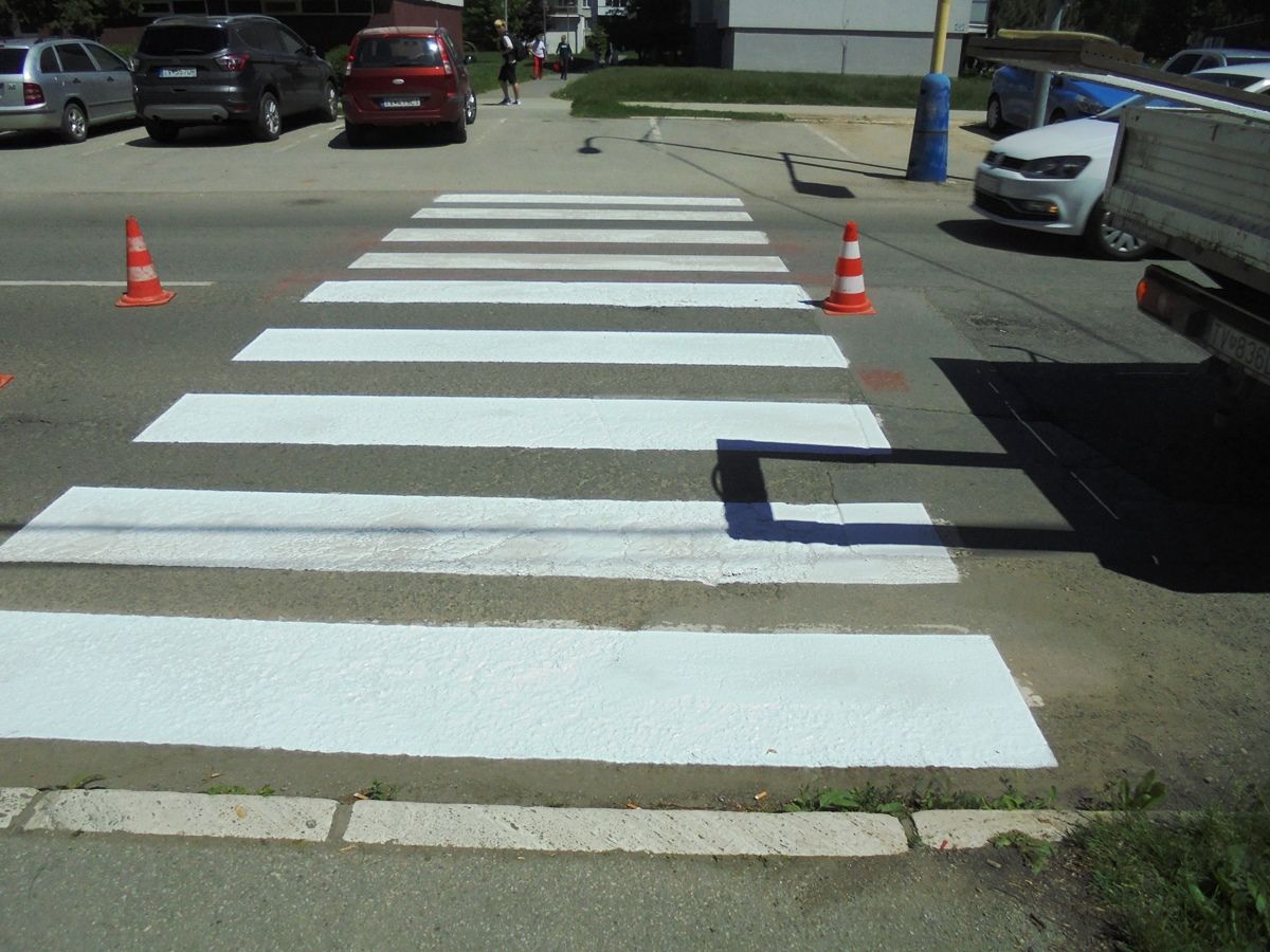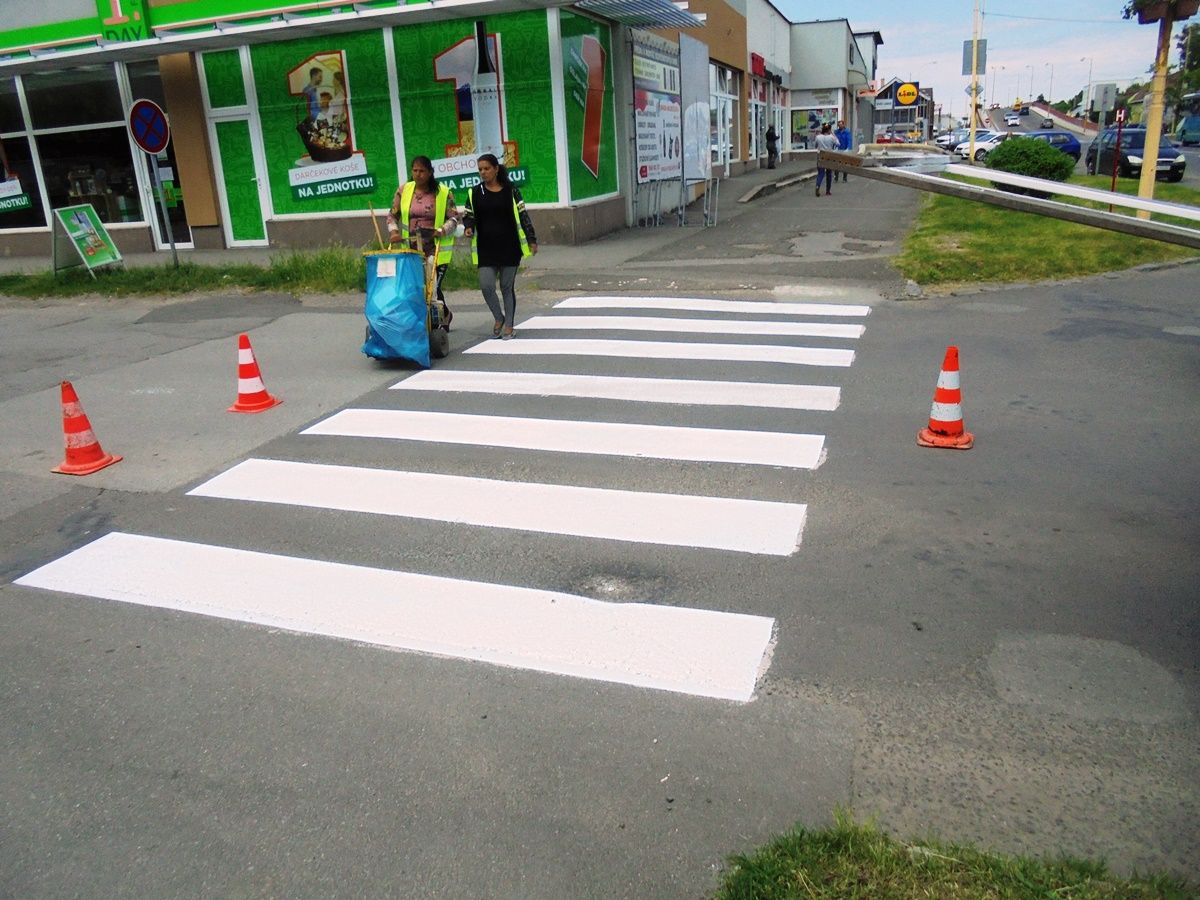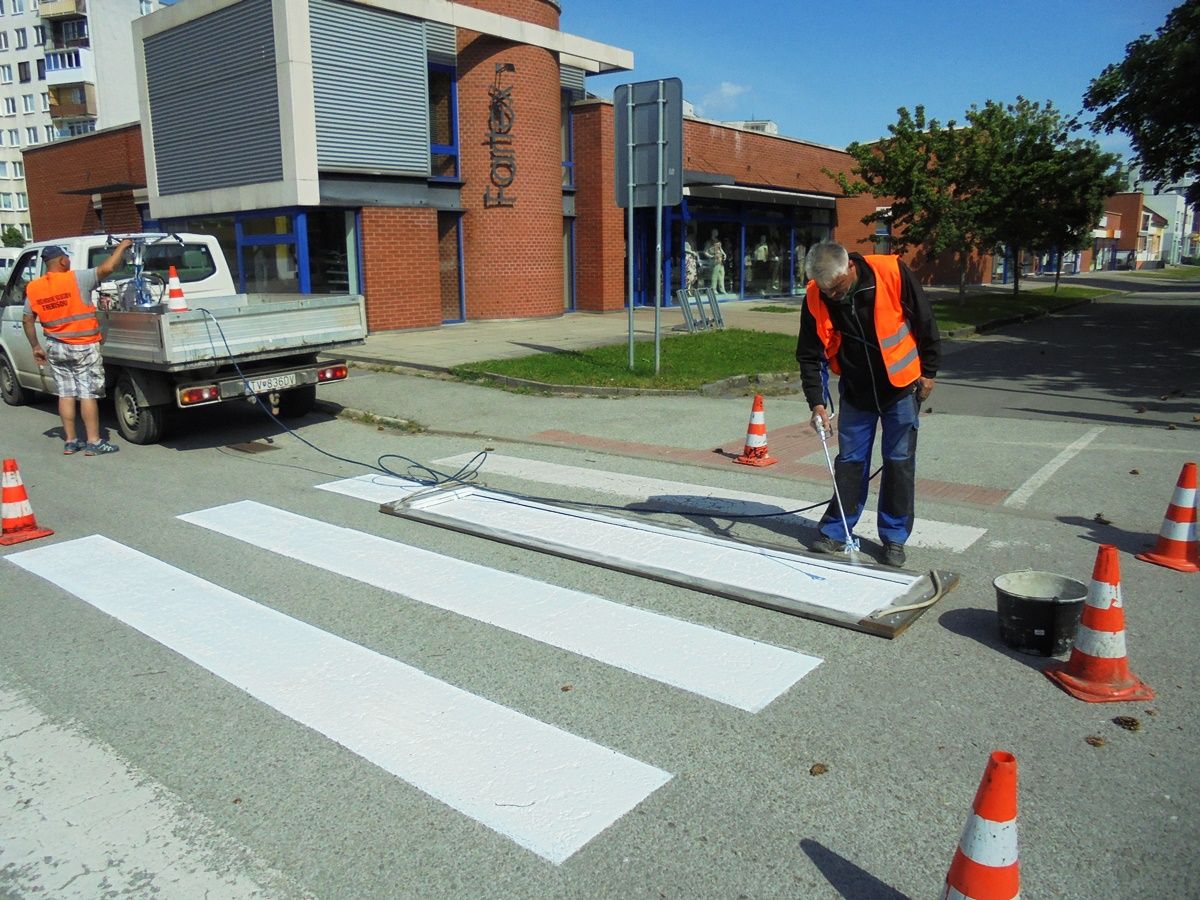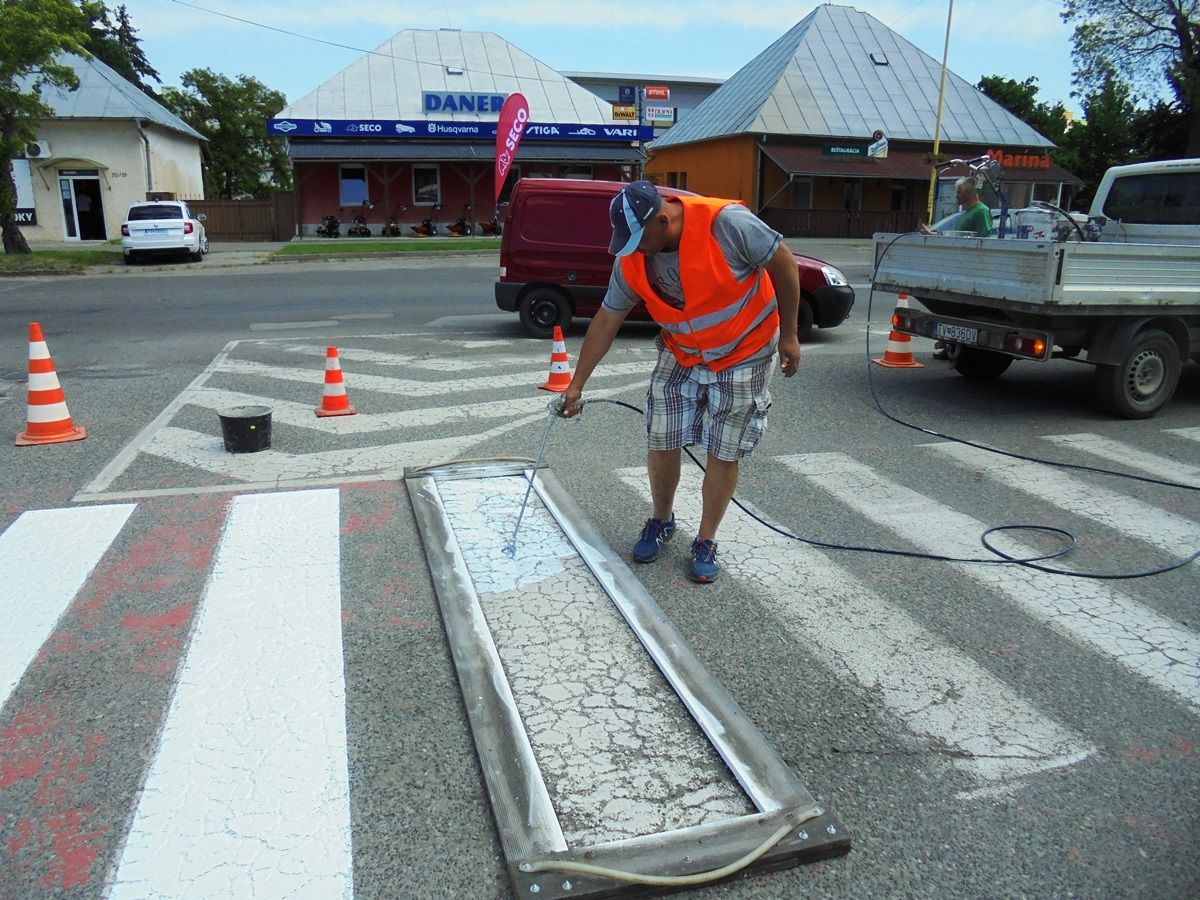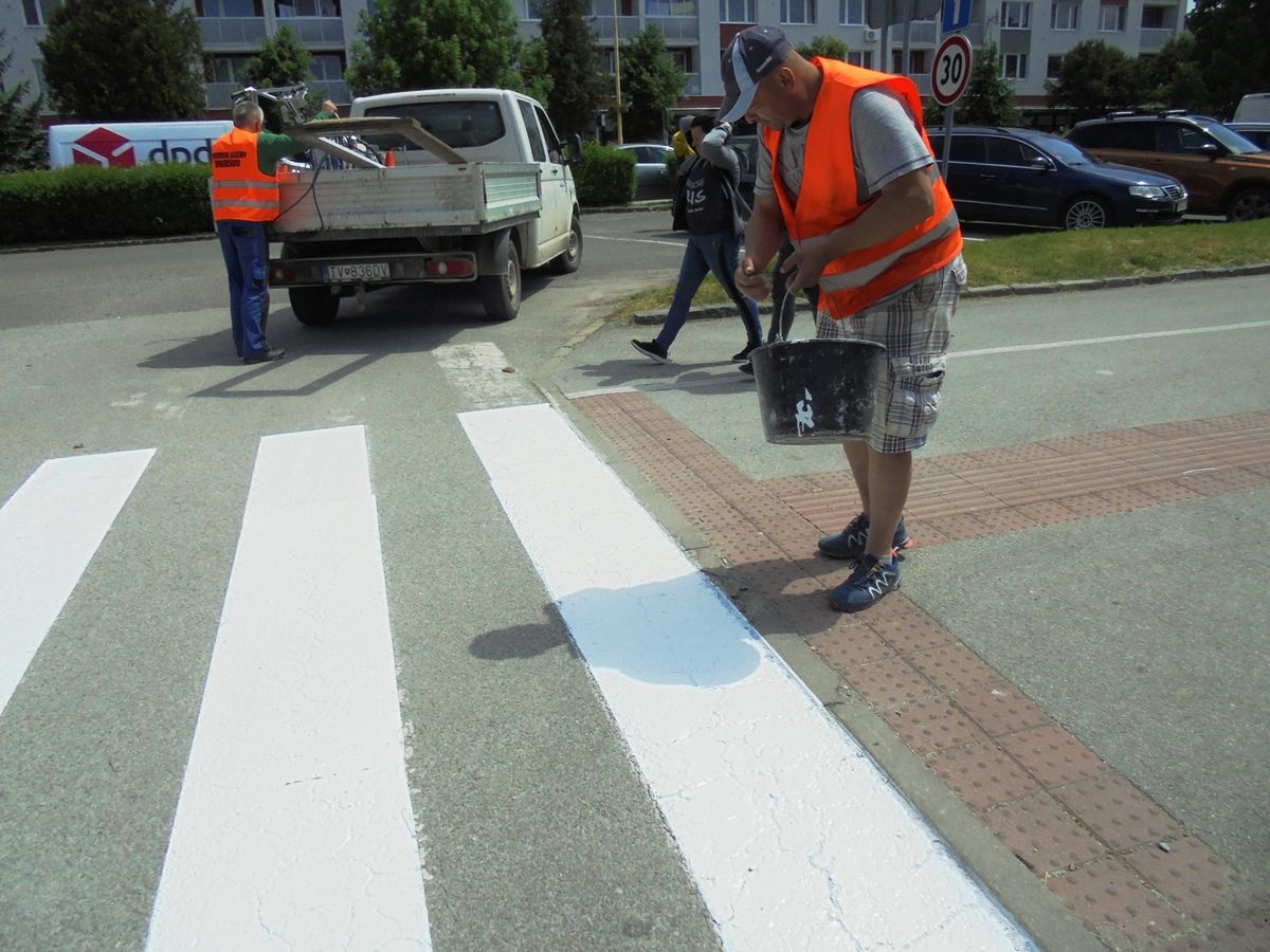 Pracovníci Technických služieb mesta Trebišov obnovili ďalších 8 priechodov pre chodcov na Ul. M. R. Štefánika a Komenského ulici.