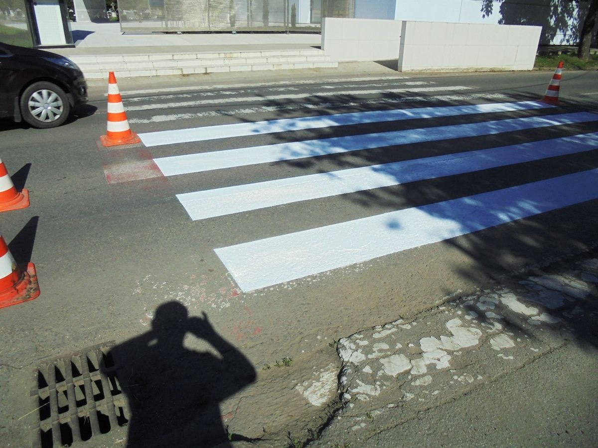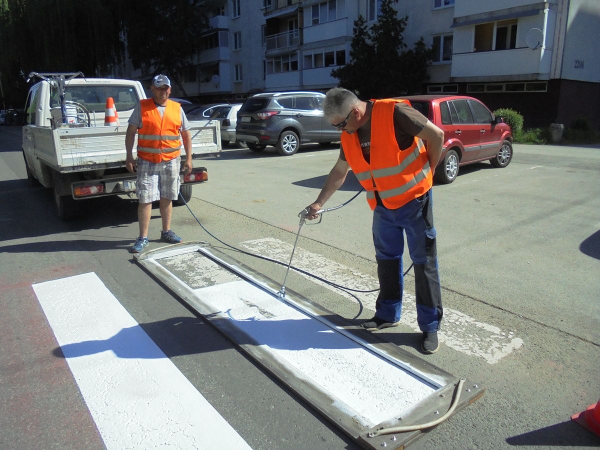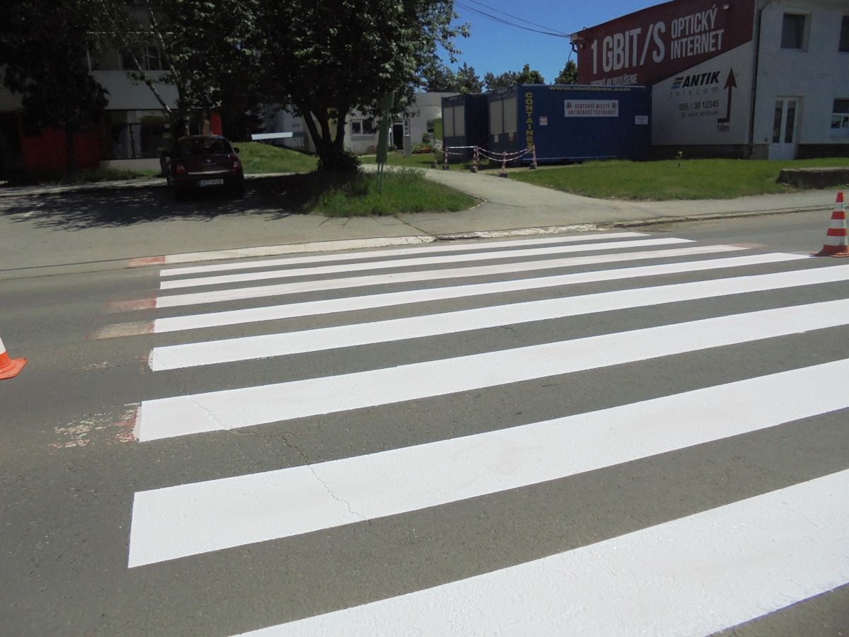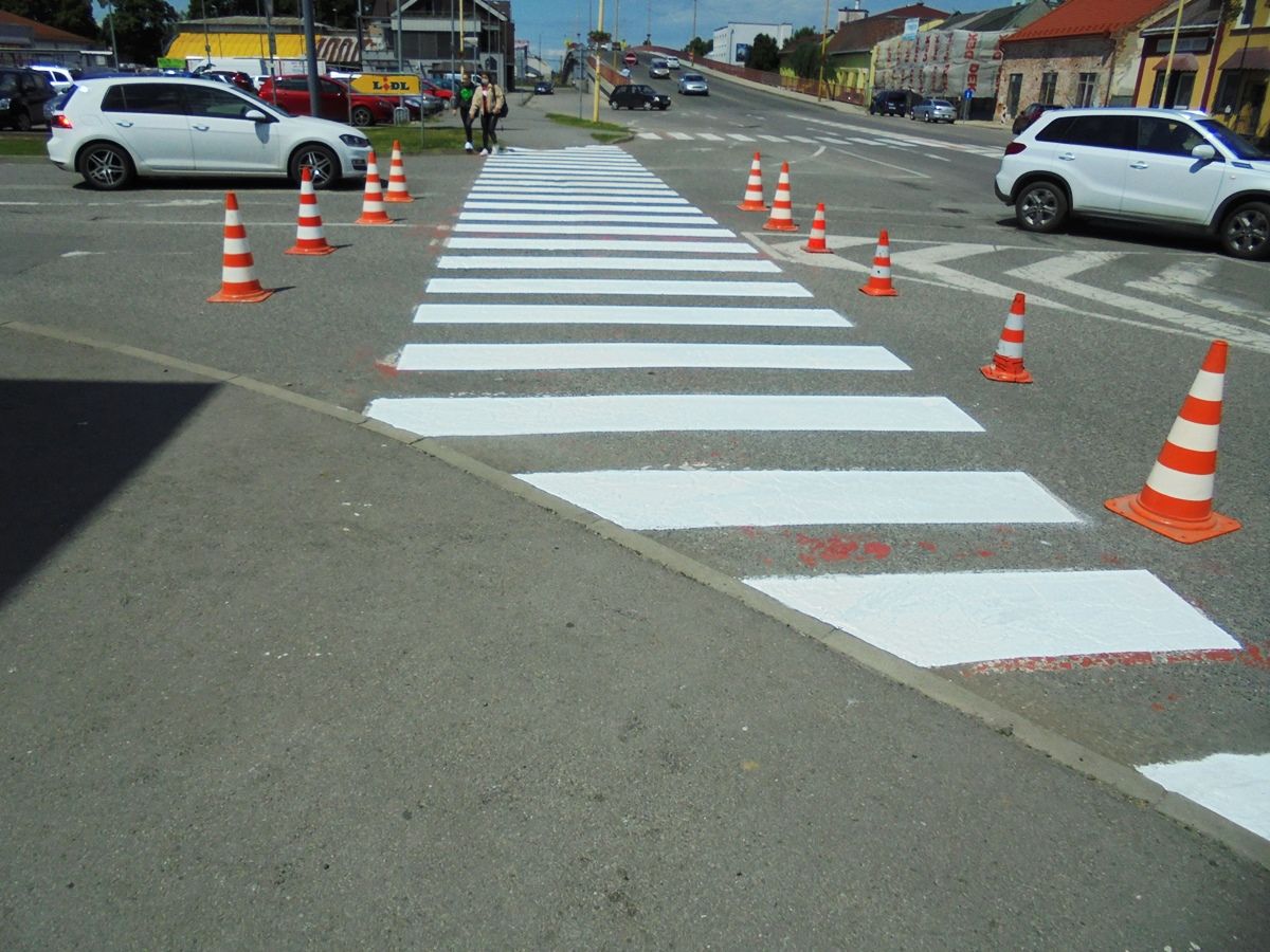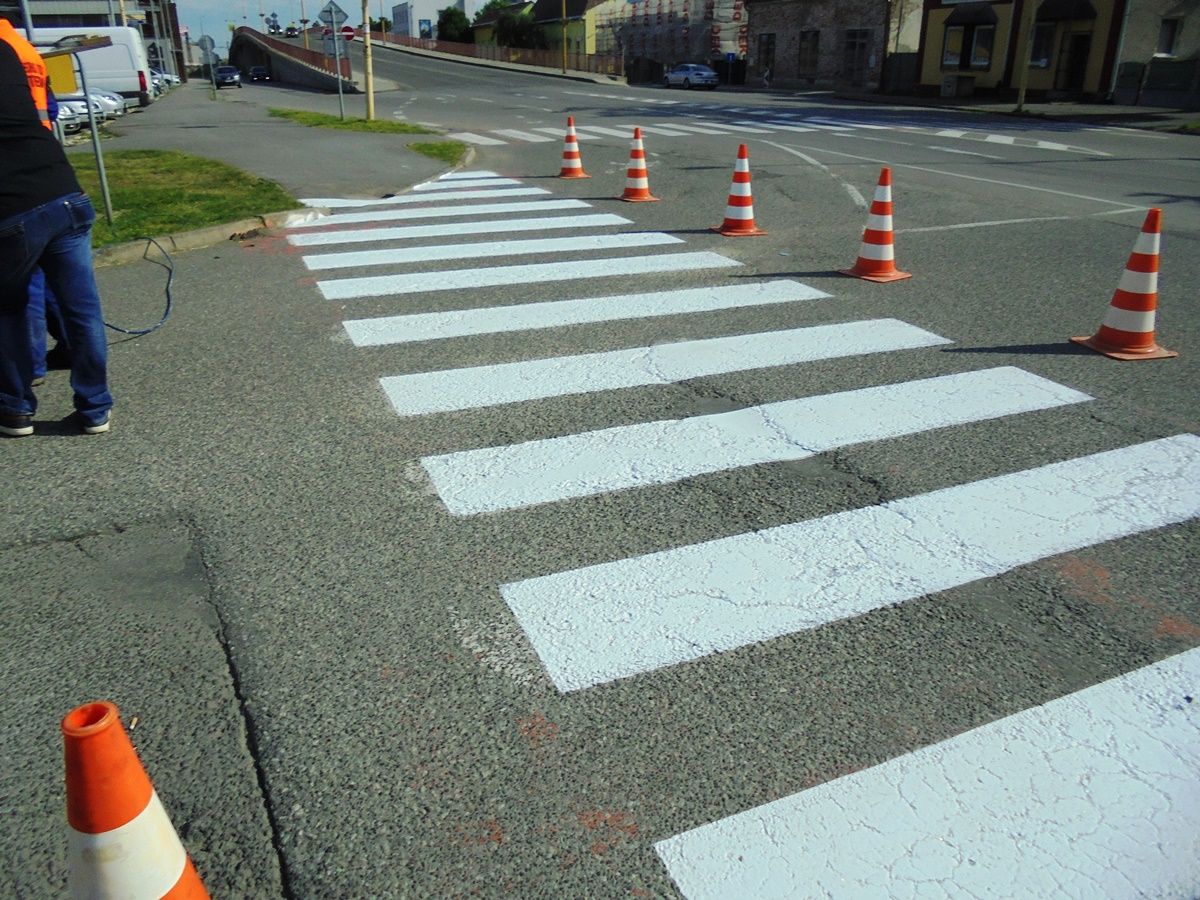 Pracovníci Technických služieb mesta Trebišov obnovili ďalších 8 priechodov pre chodcov na Ul. M. R. Štefánika a Komenského ulici.