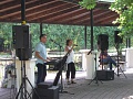 DUO TONIC (manželia Švandovci) nám spríjemnilo ukončenie uplynulého letného víkendu mixom známych evergreenov. Vďaka jeho členom a návštevníkom podujatia panovala na ostrovčeku v mestskom parku idylická atmosféra, ktorej prialo aj počasie.