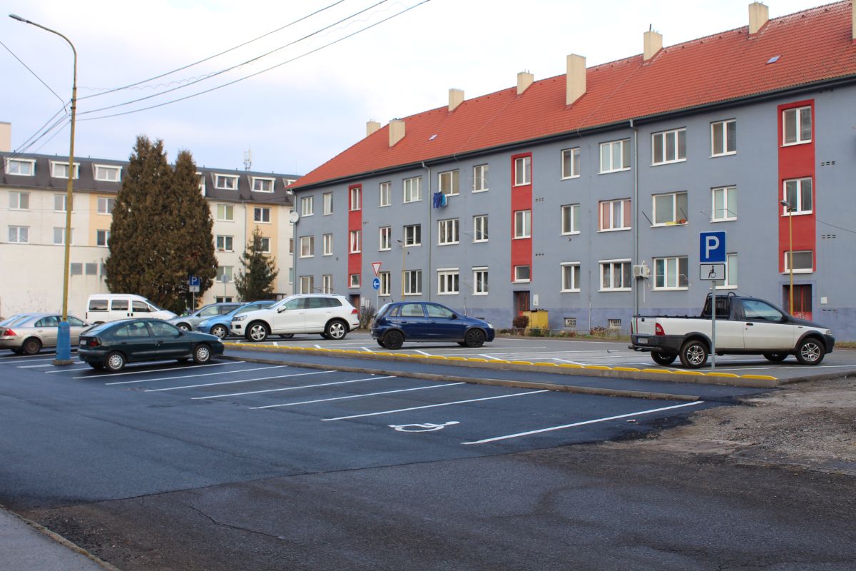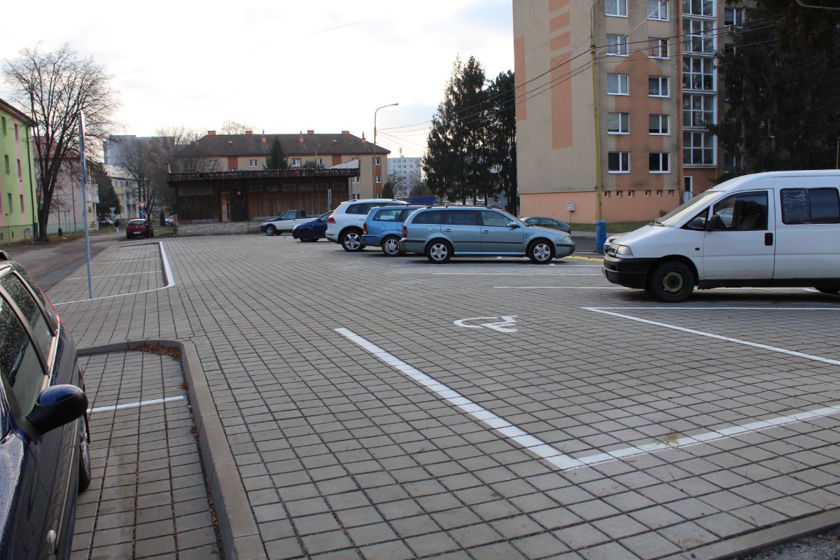 Novú odstavnú plochu s štandardnými parkovacími miestami, ktoré dopĺňajú ďalšie určené pre zdravotne znevýhodnených občanov, mesto postavilo v priestore bývalého trhoviska. Parkovacie miesto pre ZŤP bolo upravené do predpísaných legislatívnych rozmerov aj na priľahlej už existujúcej parkovacej ploche s asfaltovým povrchom.