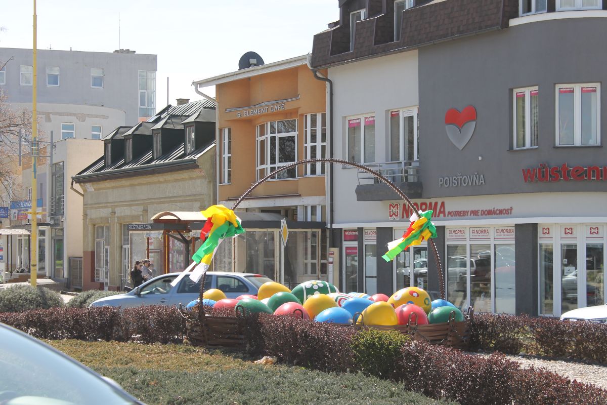Počas pracovných dní pred Palmovou nedeľou mesto nainštalovalo jednu kraslicu vo farbách mesta v nadrozmernej veľkosti na Mariánskom námestí, pri ZUŠ, a druhú na pešej zóne, v blízkosti budovy Slovenskej pošty.